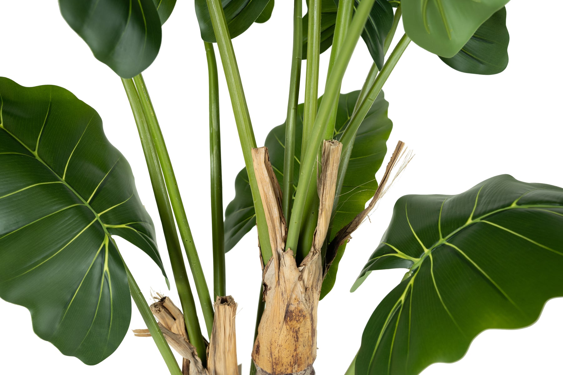 frunzele din material textil acoperit cu pelicula siliconatica,LPDE (polietilena de joasa densitate),scoarta naturala de bananier,trunchi din fibra de sticla multistrat cu aspect natural de scoarta de copac