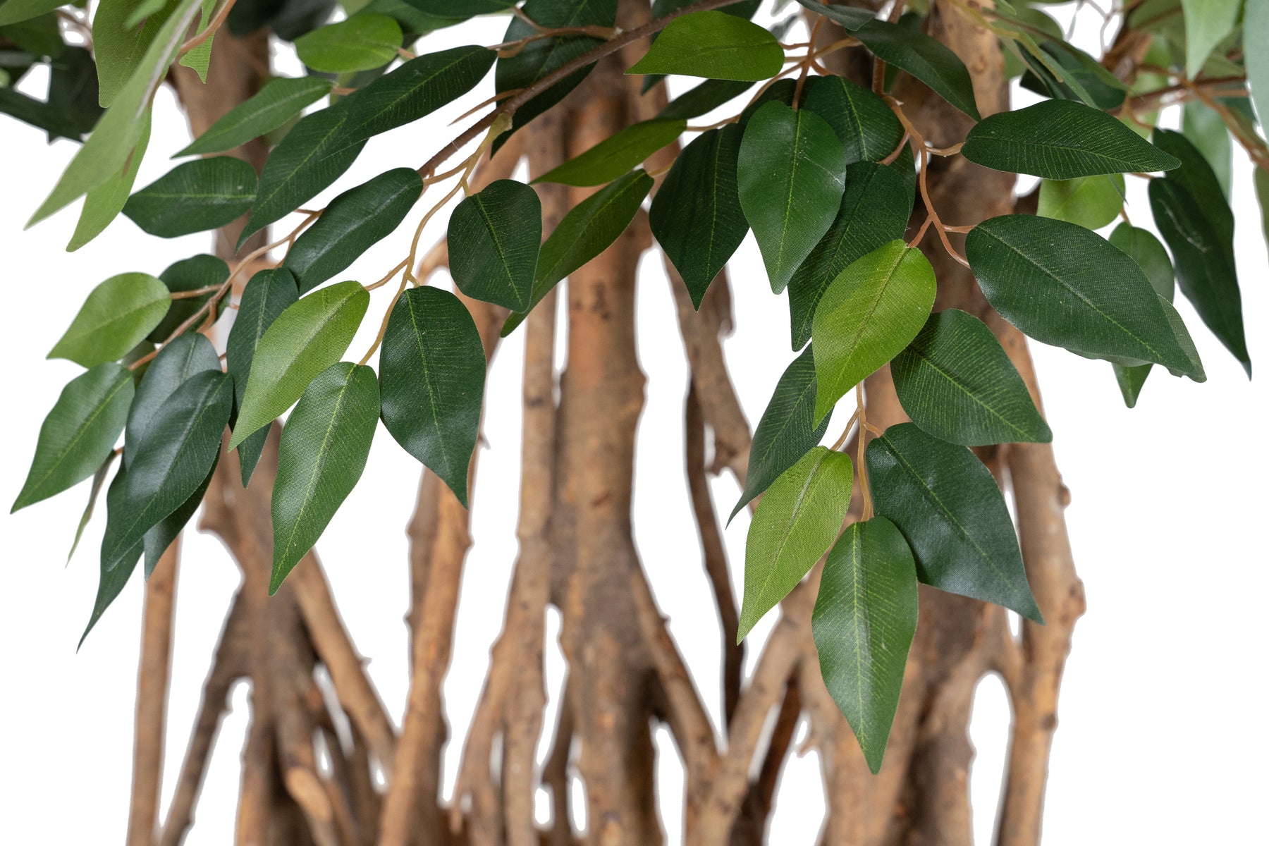 Copac artificial H270cm Ficus benjamina cu trunchiuri din lemn impletite cu 3108 frunze