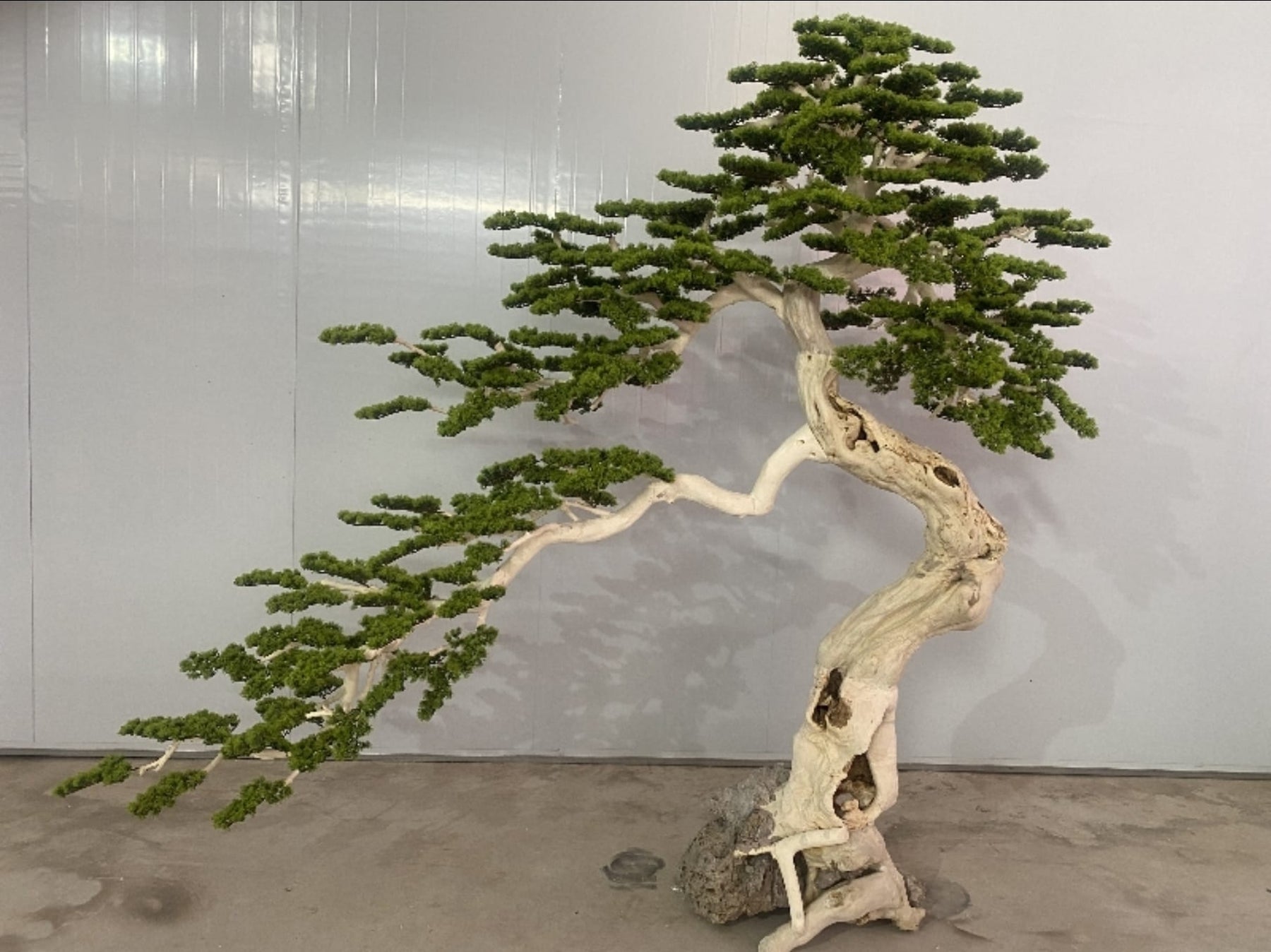Comanda acum Bonsai artificial H280cm Pin cu trunchi natural din lemn cu frunze verzi