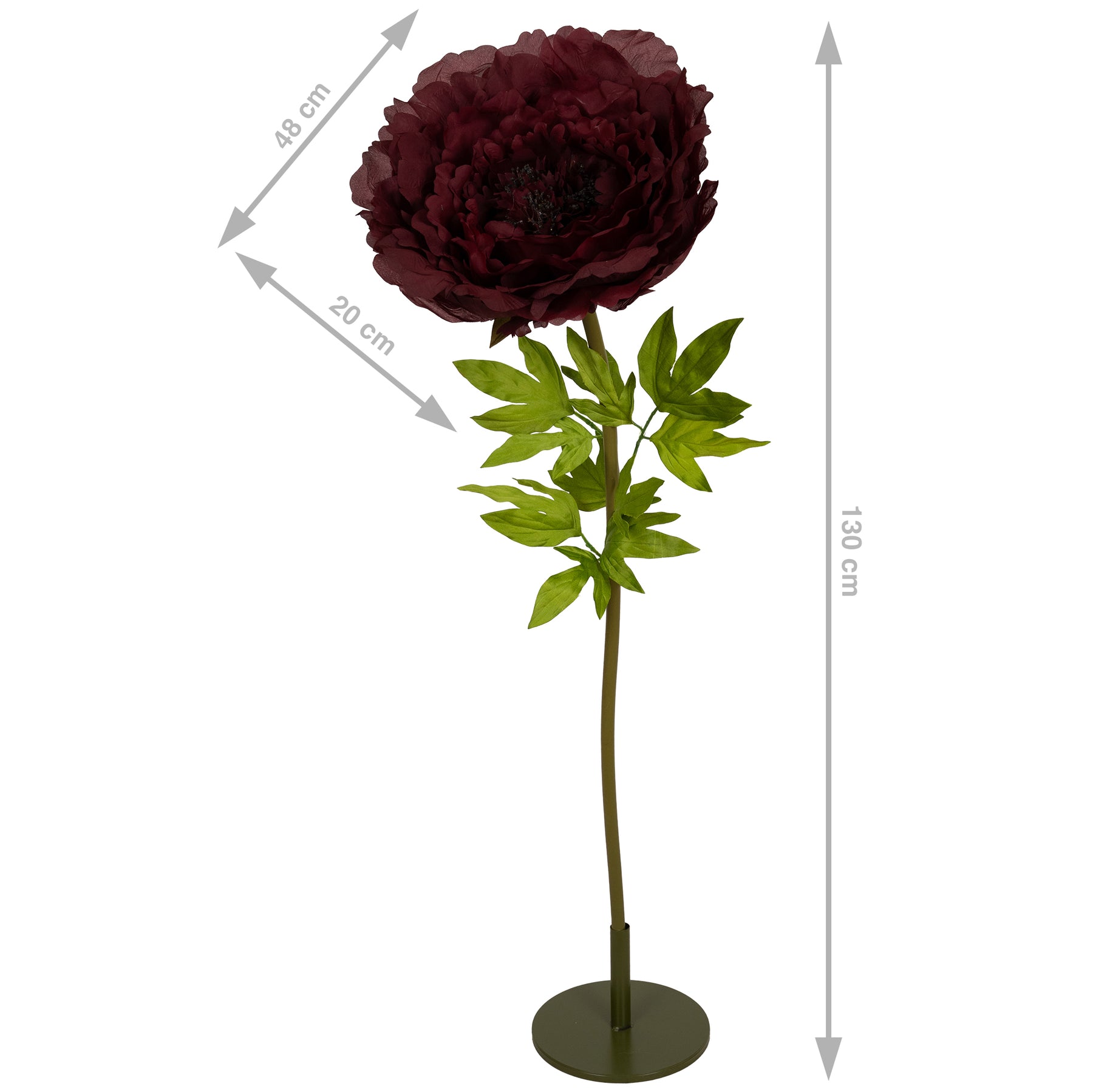 Bujor artificial D58xH140 cm burgundy cu tulpina gigant XXXL fara suport