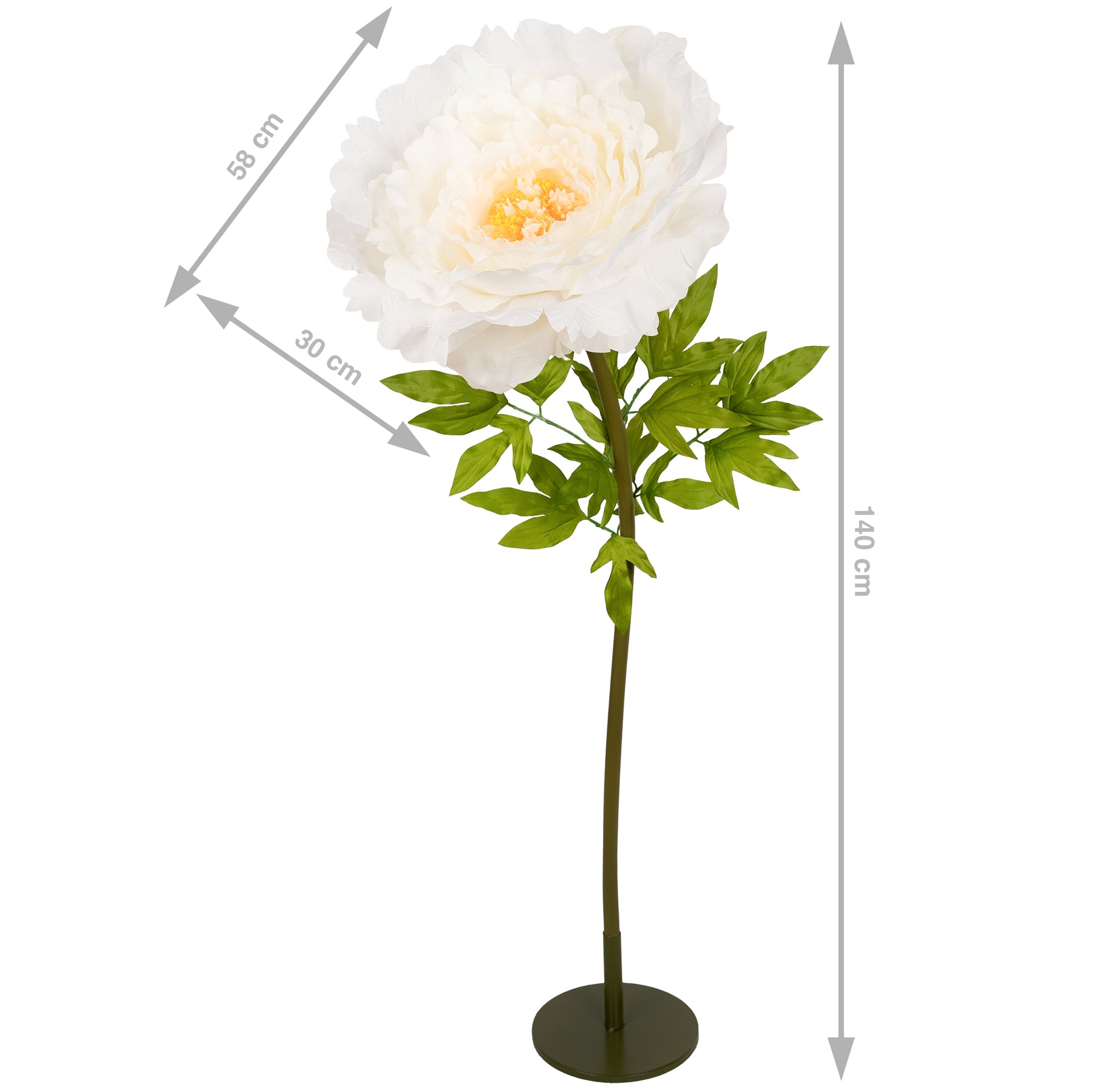 Bujor artificial D58xH140 cm galben cu tulpina gigant XXXL fara suport