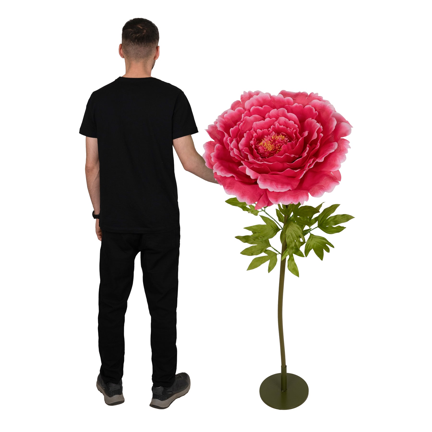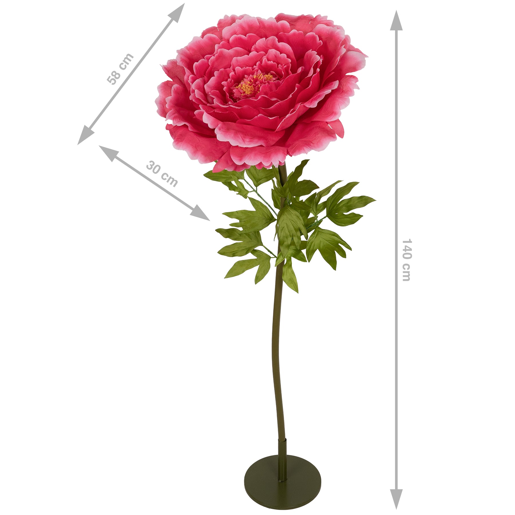 Bujor artificial D58xH140 cm rosu cu tulpina gigant XXXL fara suport