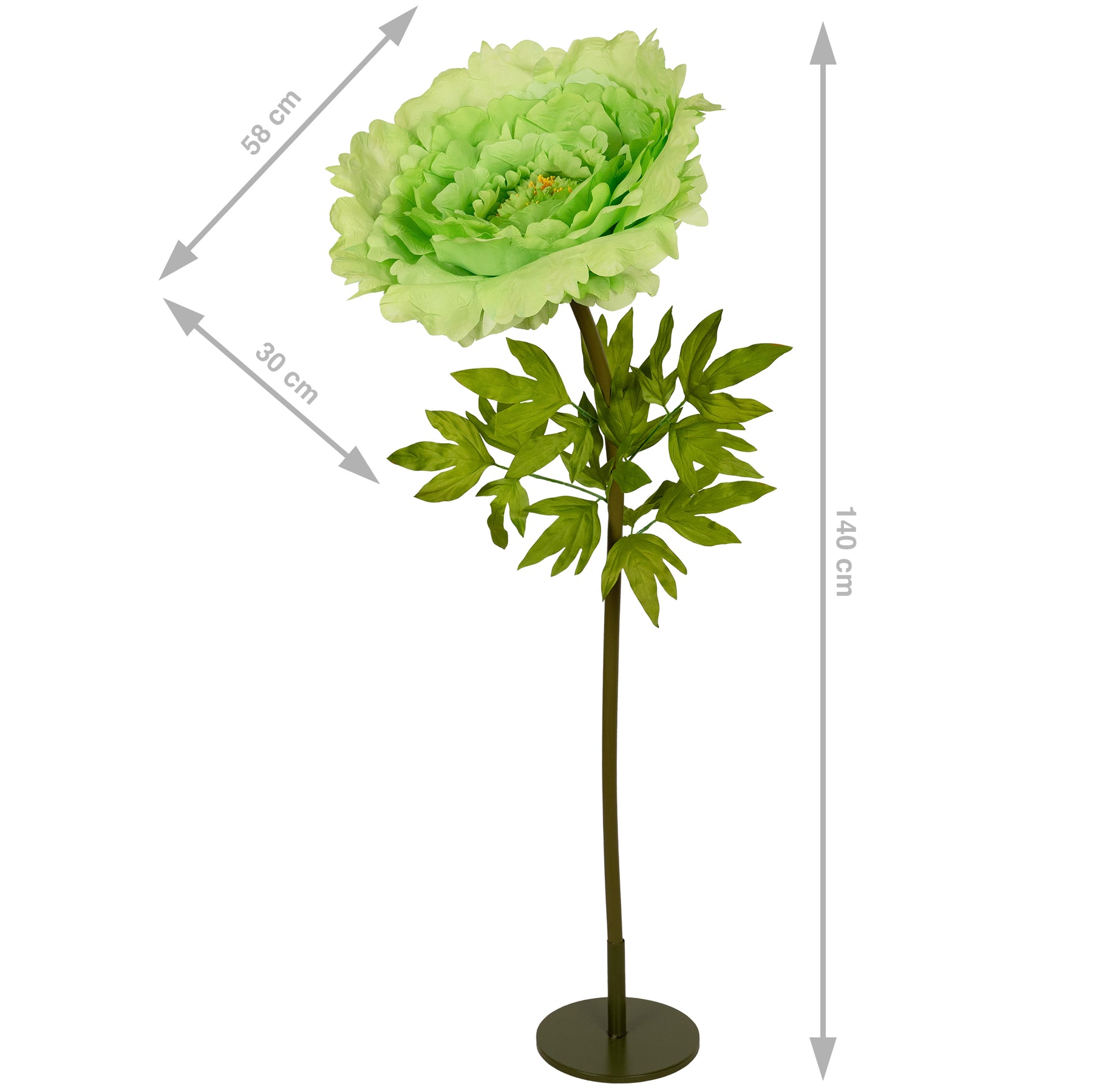 Bujor artificial D58xH140 cm rosu cu tulpina gigant XXXL fara suport