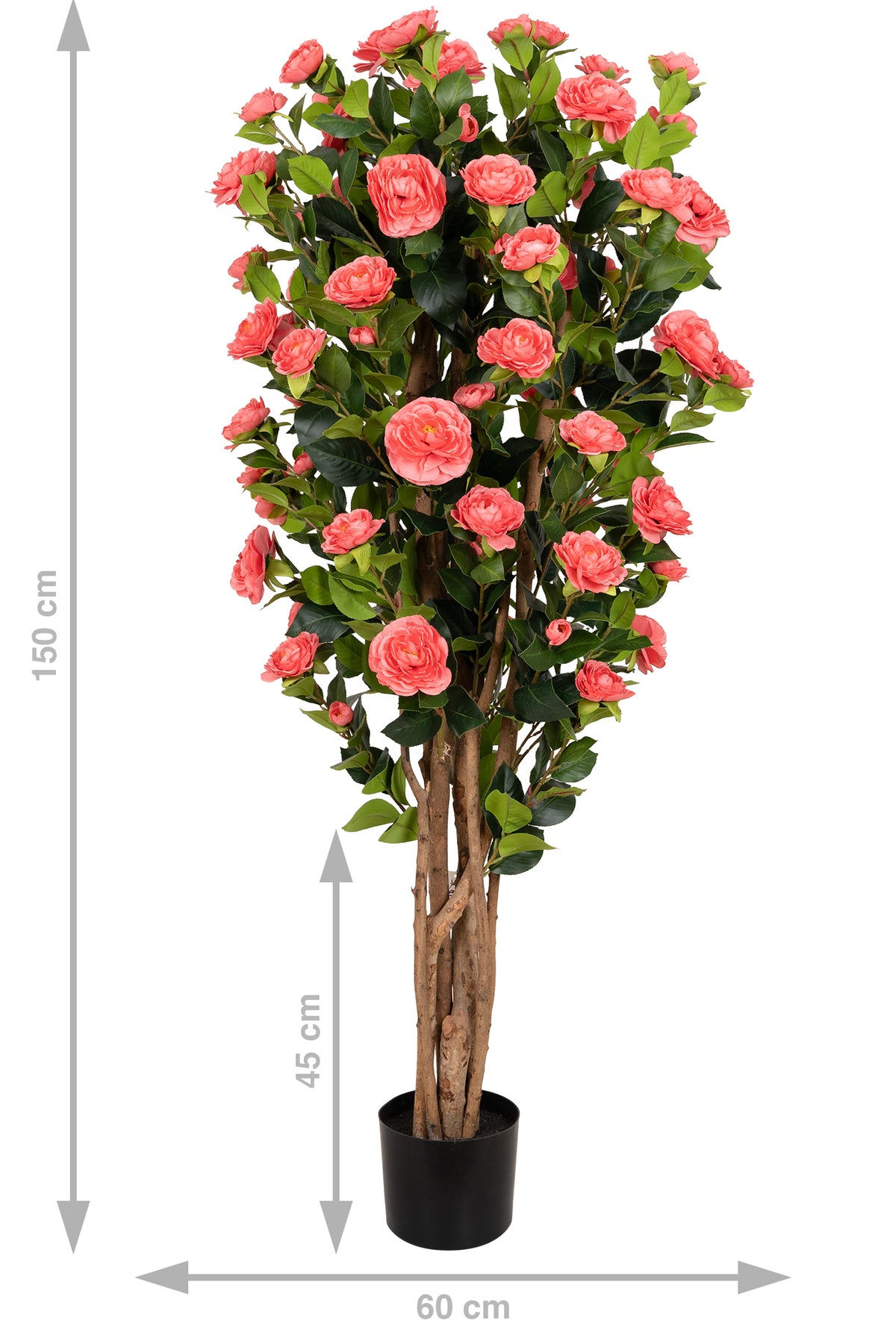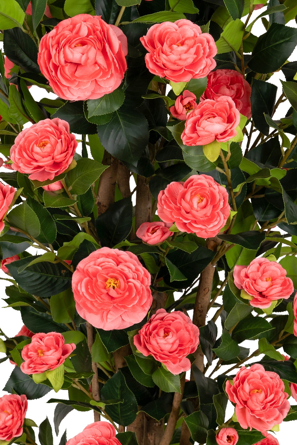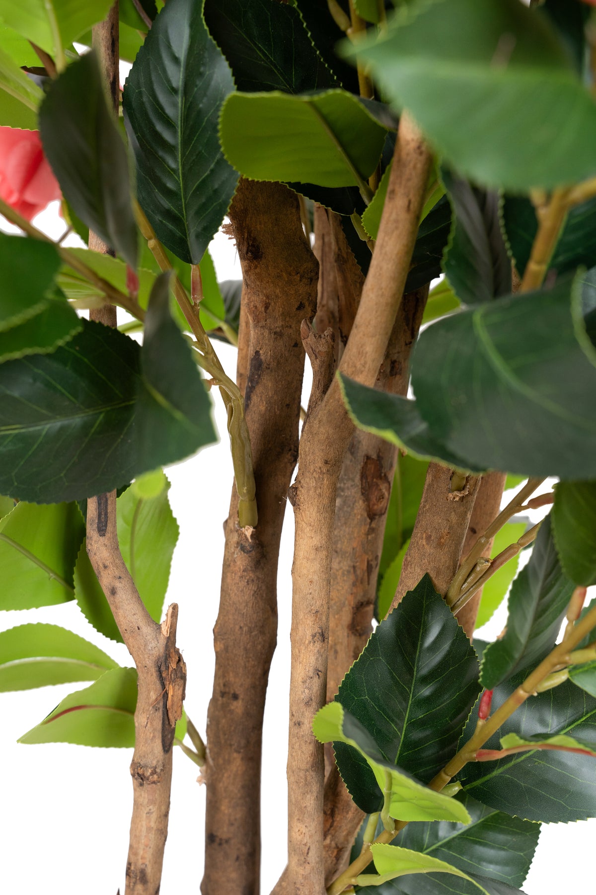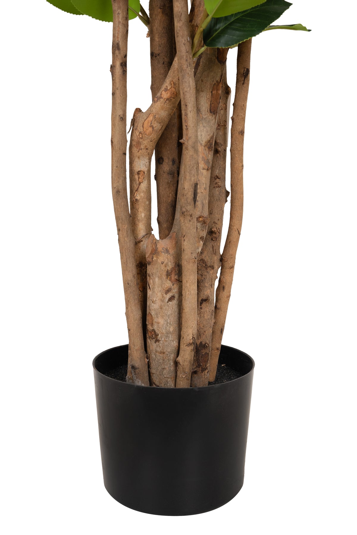 frunzele artificiale sunt fixate pe sarma metalica flexibila acoperita cu multistraturi de PP, realizate din 33 nanostraturi de PP, cu aspect natural,trunchi natural din lemn