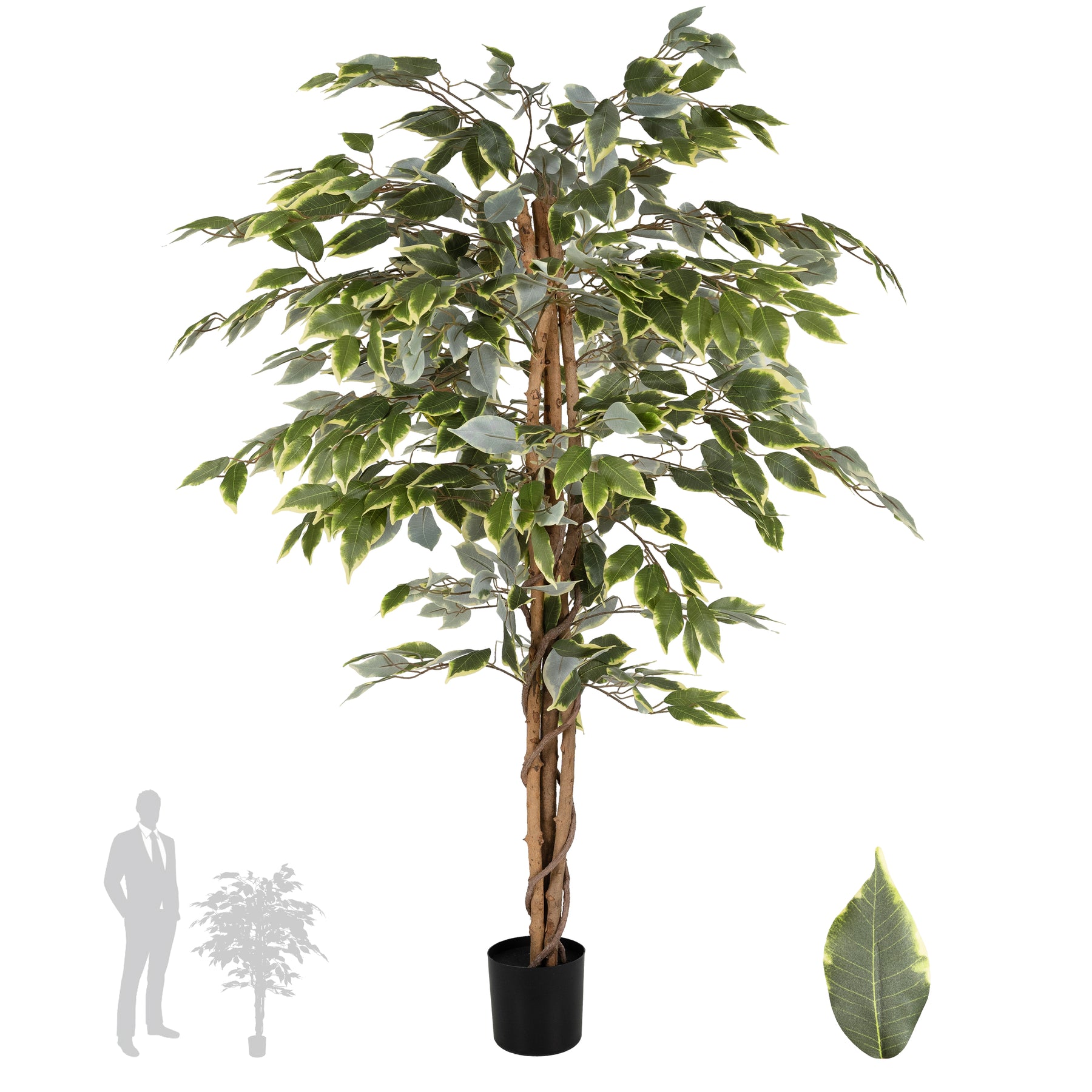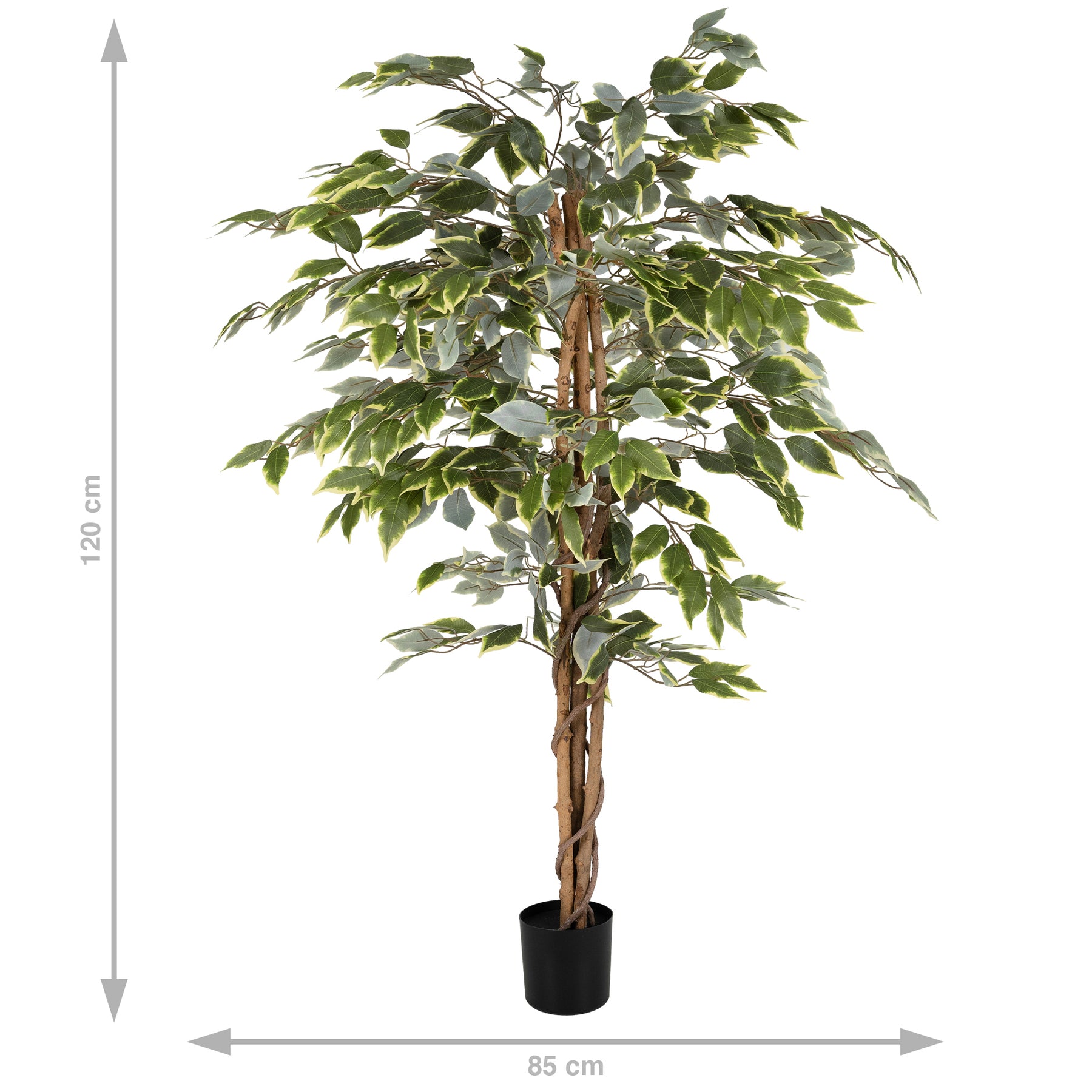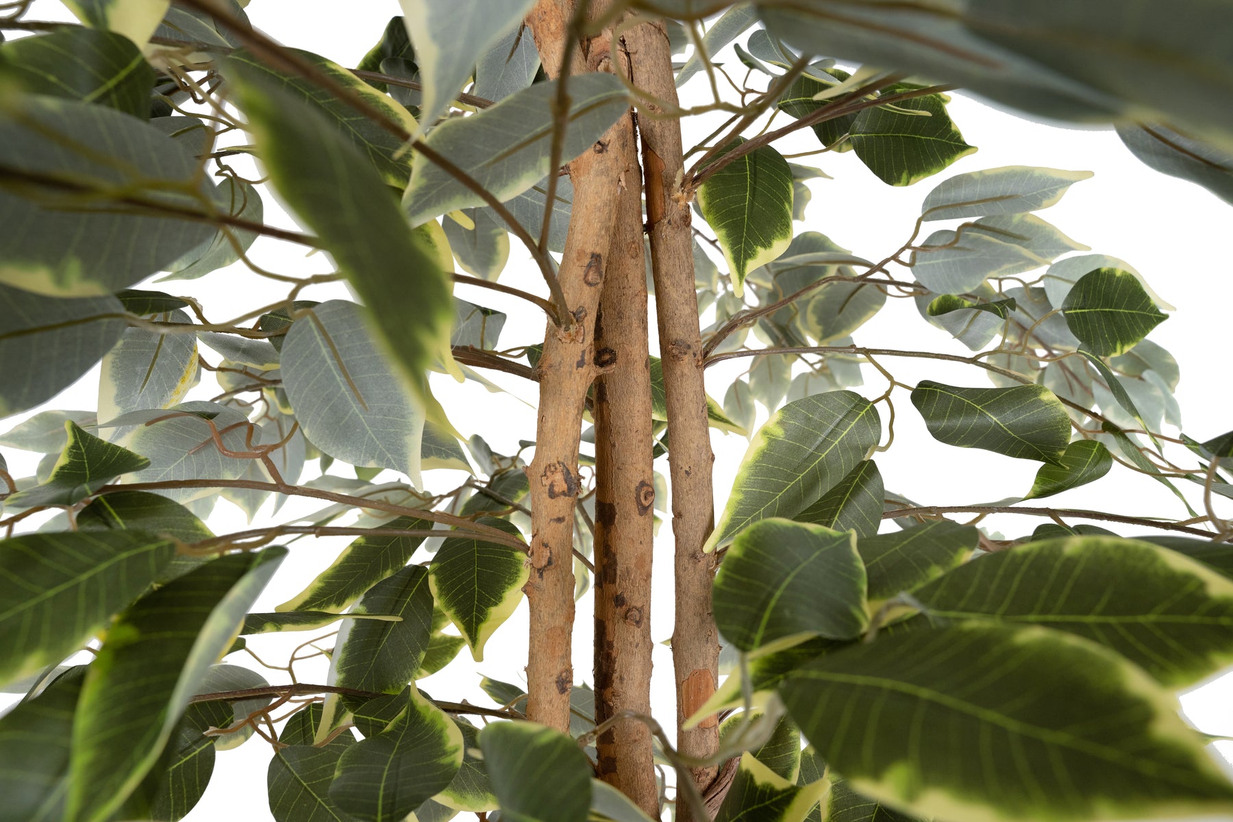Copac artificial H150cm Ficus variegat cu 3 trunchiuri si 882 frunze verde cu alb