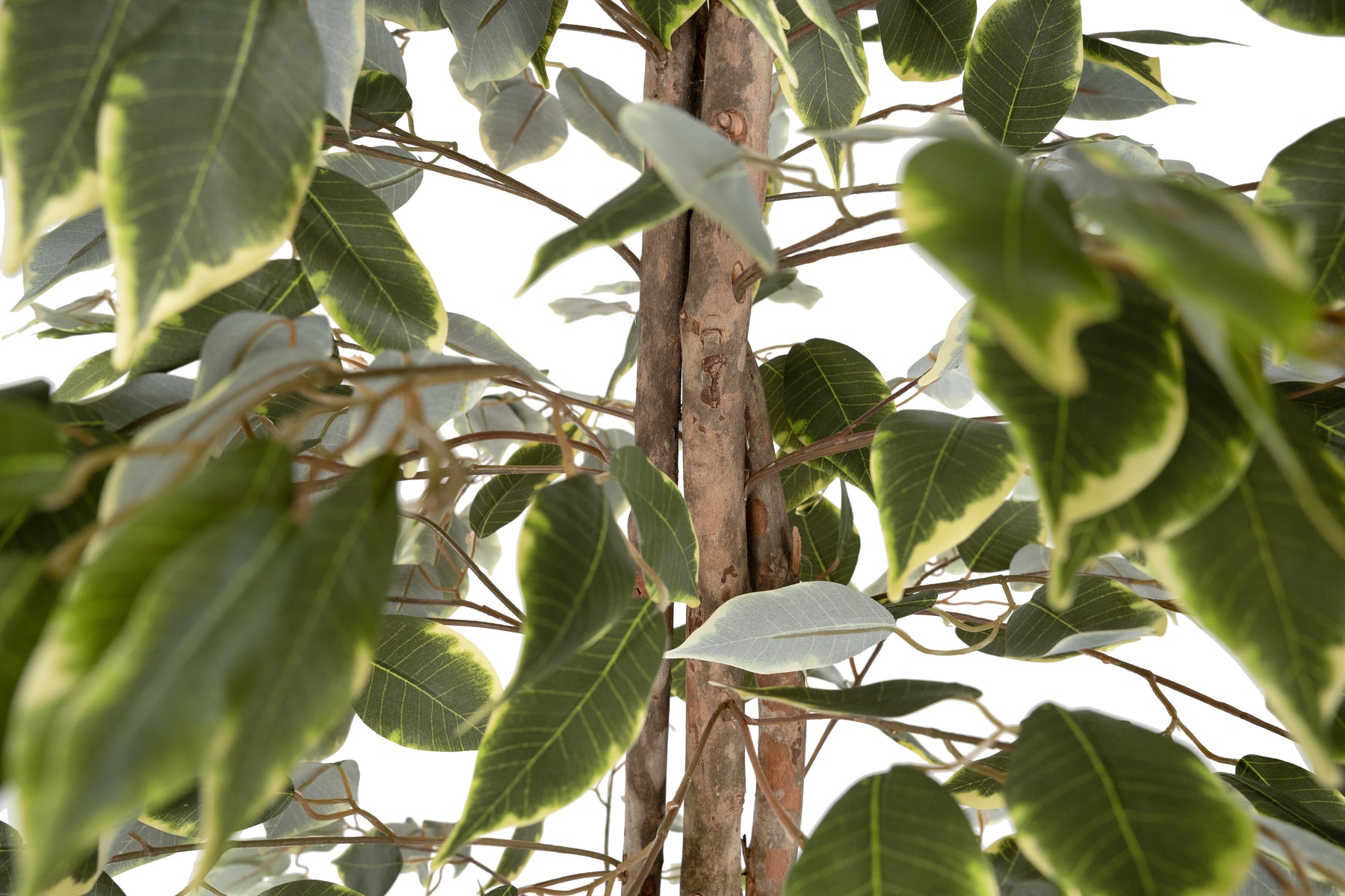 Copac artificial H180cm Ficus variegat cu 3 trunchiuri si 966 frunze verde cu alb