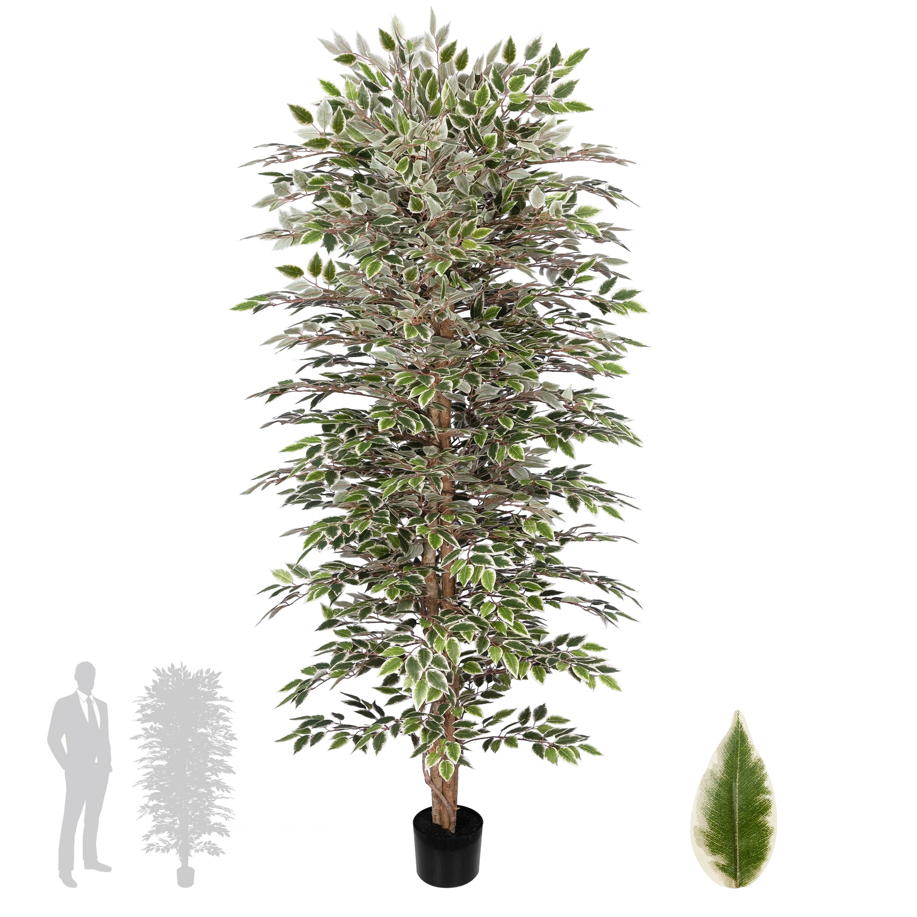 Copac artificial H225cm Ficus benjamina cu trunchiuri din lemn impletite cu 2016 frunze