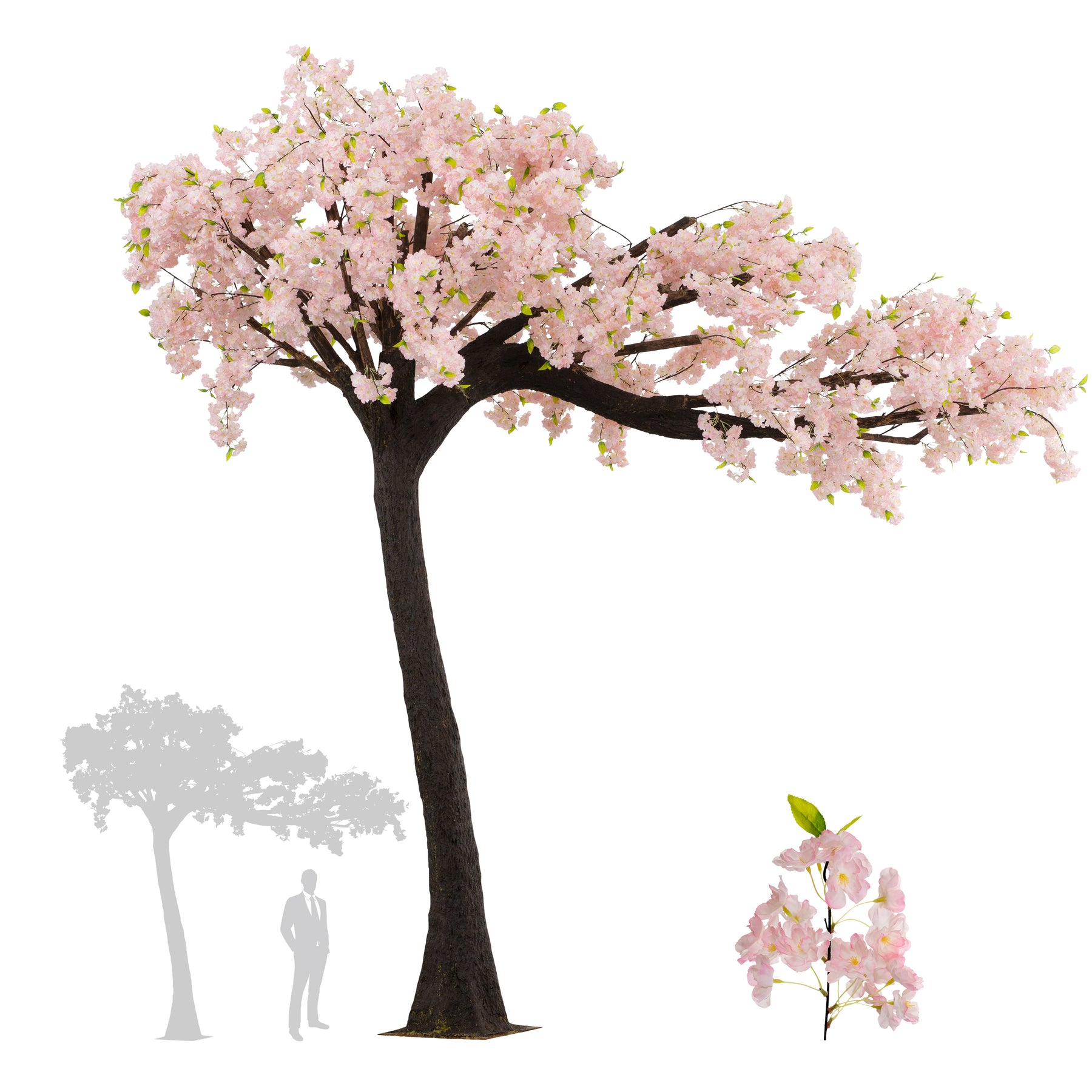 Copac artificial H310cm Cires cu flori roz deschis. coroana D310cm