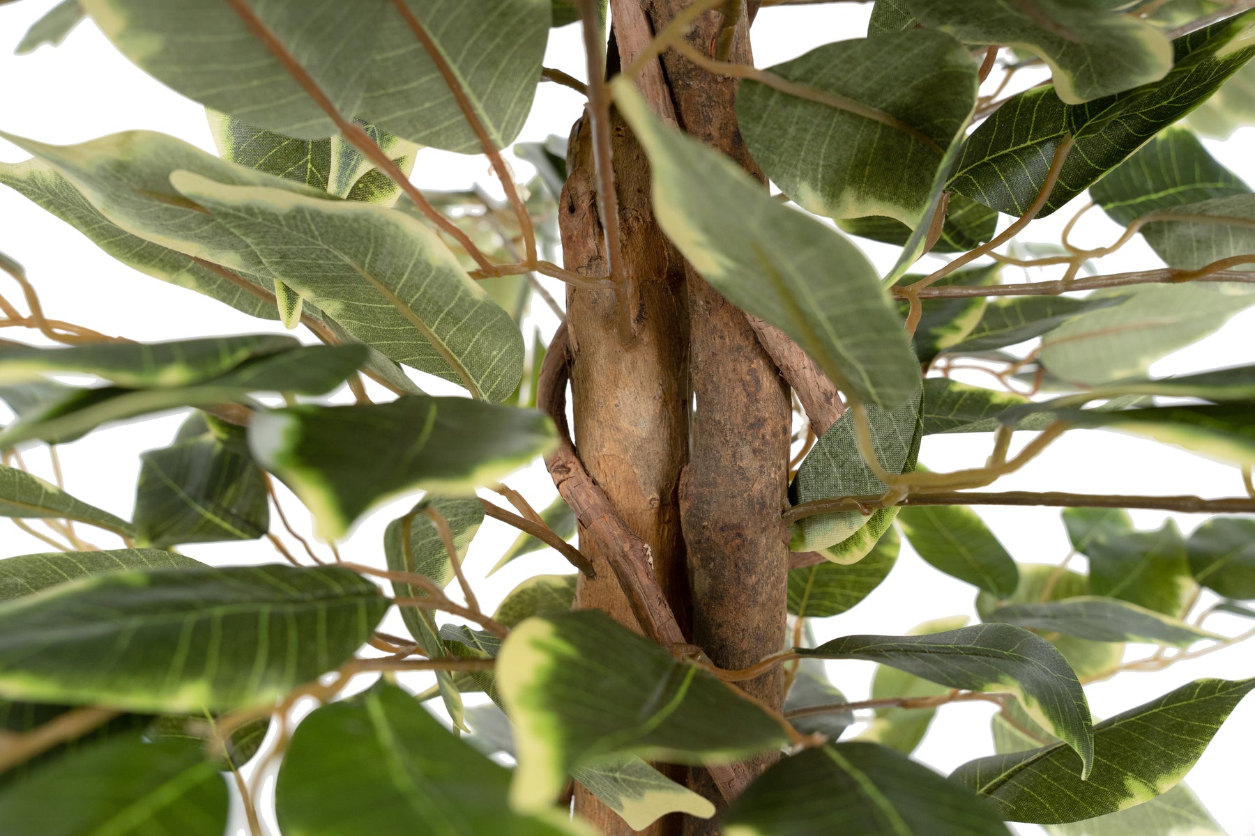 Copac artificial H150cm Ficus variegat cu 3 trunchiuri si 882 frunze verde cu alb