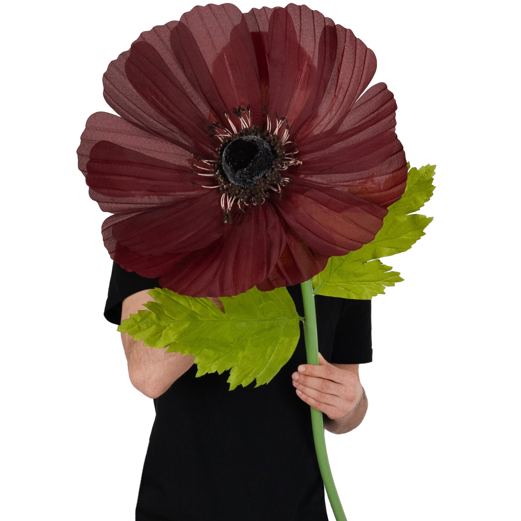 Bujor artificial D38xH110 cm negru cu tulpina gigant XL fara suport
