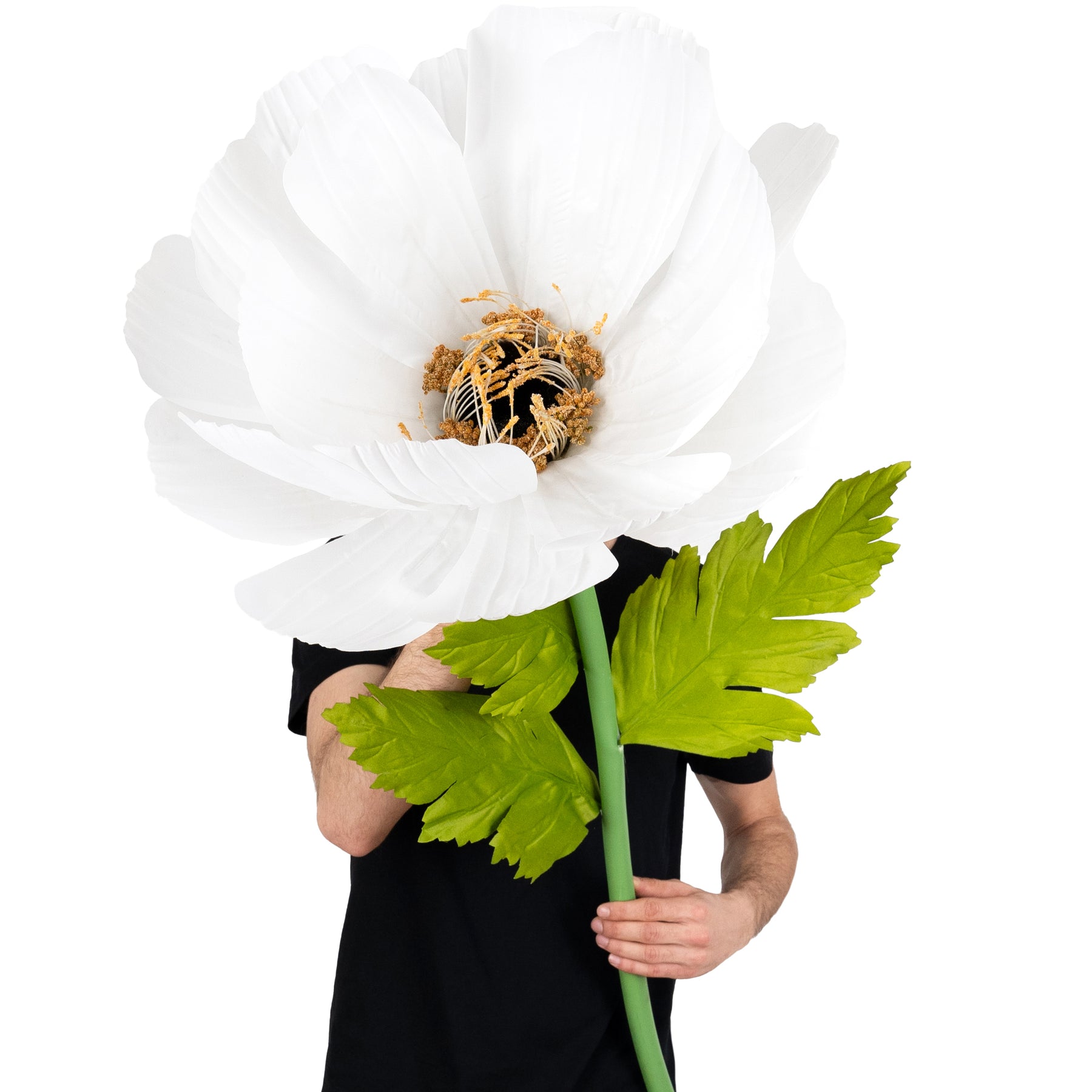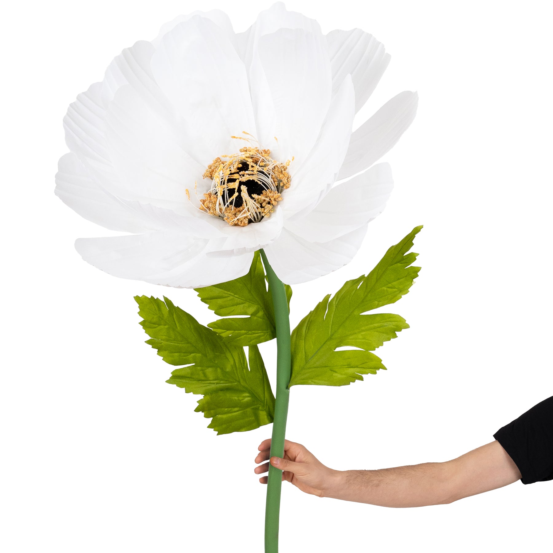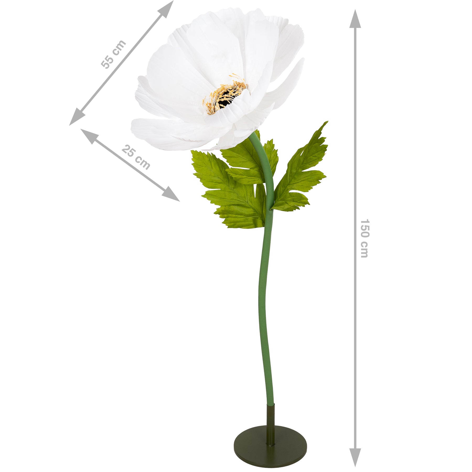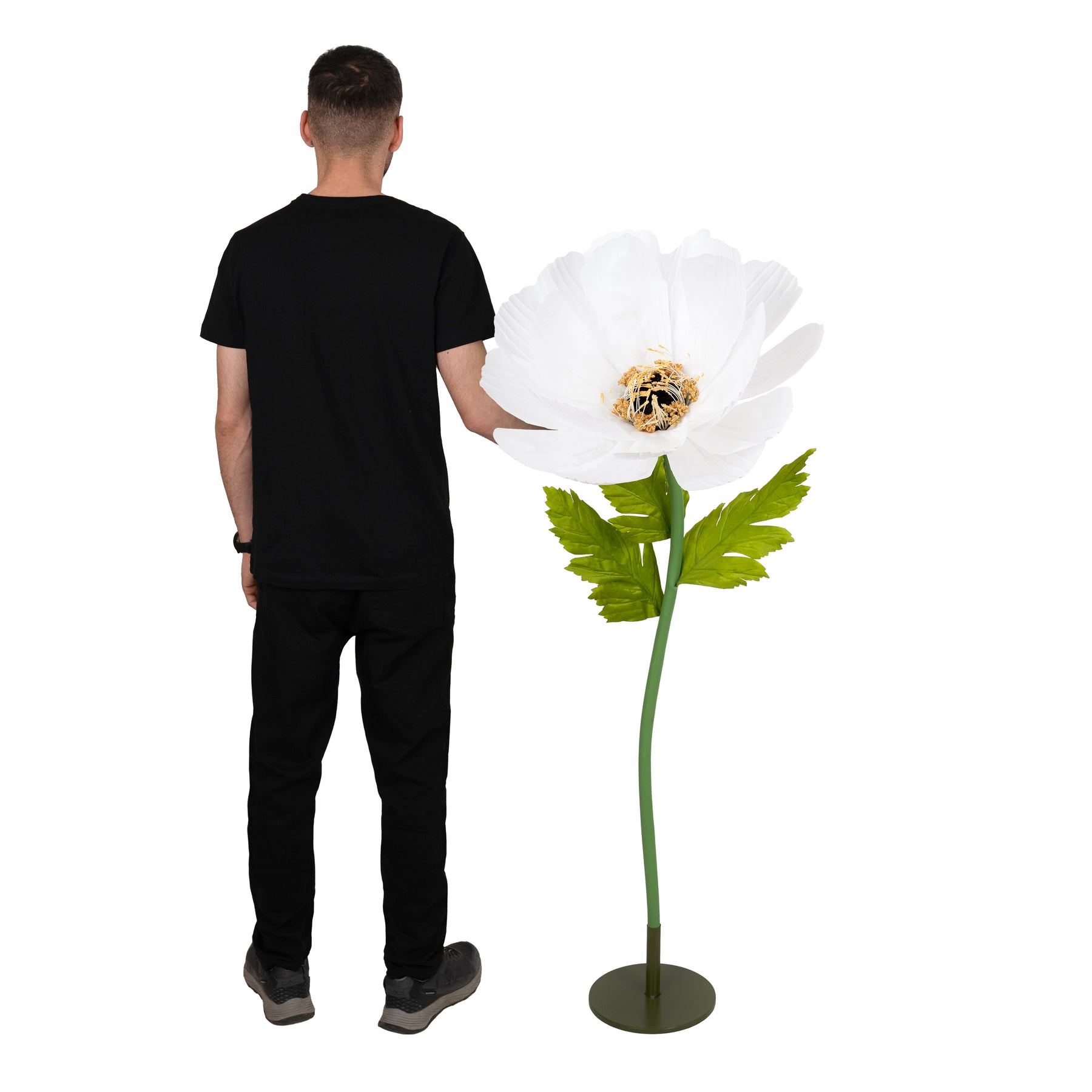 Bujor artificial D58xH140 cm alb cu tulpina gigant XXXL fara suport