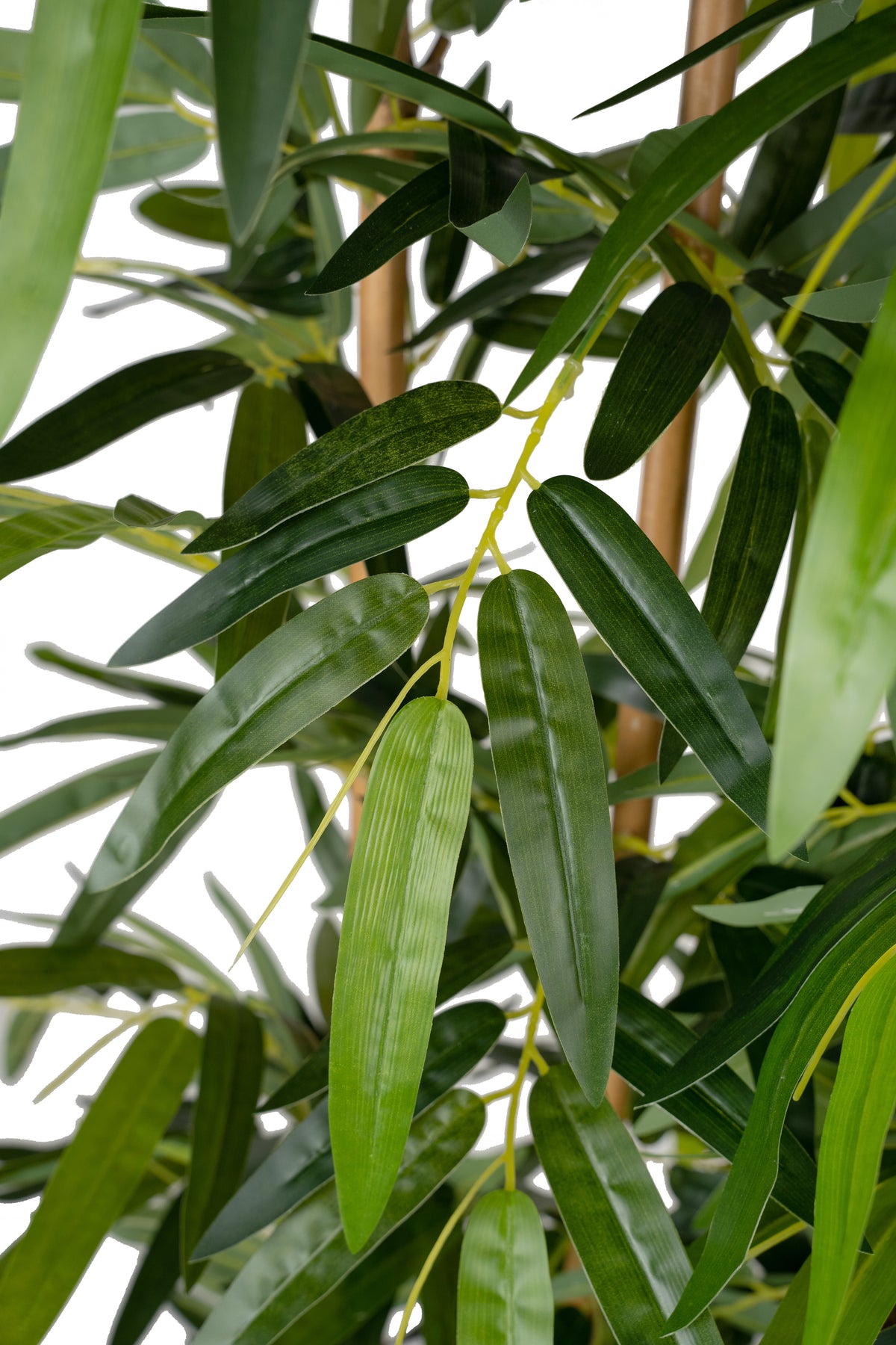 frunzele artificiale sunt fixate pe sarma metalica flexibila acoperita cu multistraturi de PP, realizate din 33 nanostraturi de PP, cu aspect natural,LPDE (polietilena de joasa densitate),trunchi natural din bambus