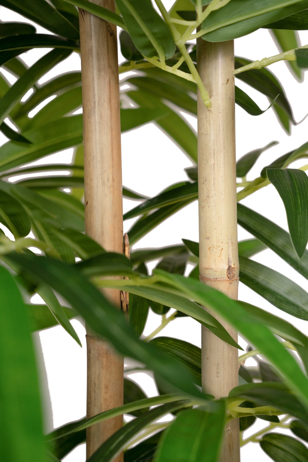 frunzele artificiale sunt fixate pe sarma metalica flexibila acoperita cu multistraturi de PP, realizate din 33 nanostraturi de PP, cu aspect natural,LPDE (polietilena de joasa densitate),trunchi natural din bambus