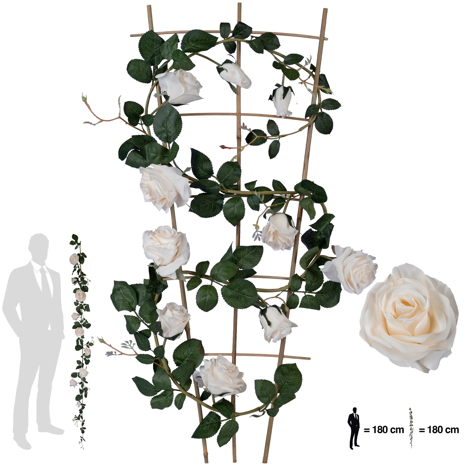 Ghirlanda artificiala din trandafiri cu 8 flori roz deschis si 2 boboci H180 cm