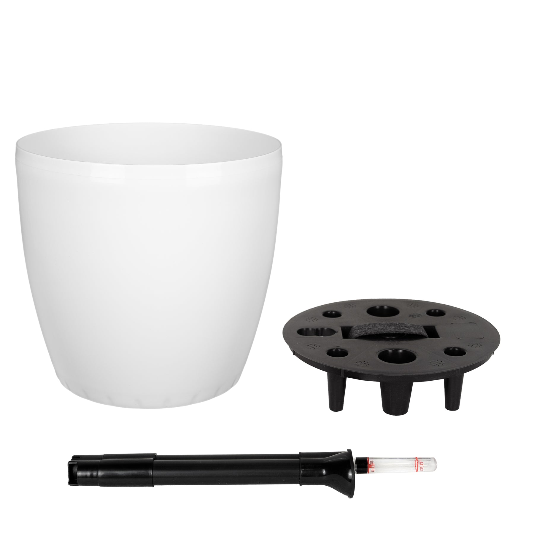 Ghiveci inteligent H20xD22 cm Classico cu set complet udare alb lucios