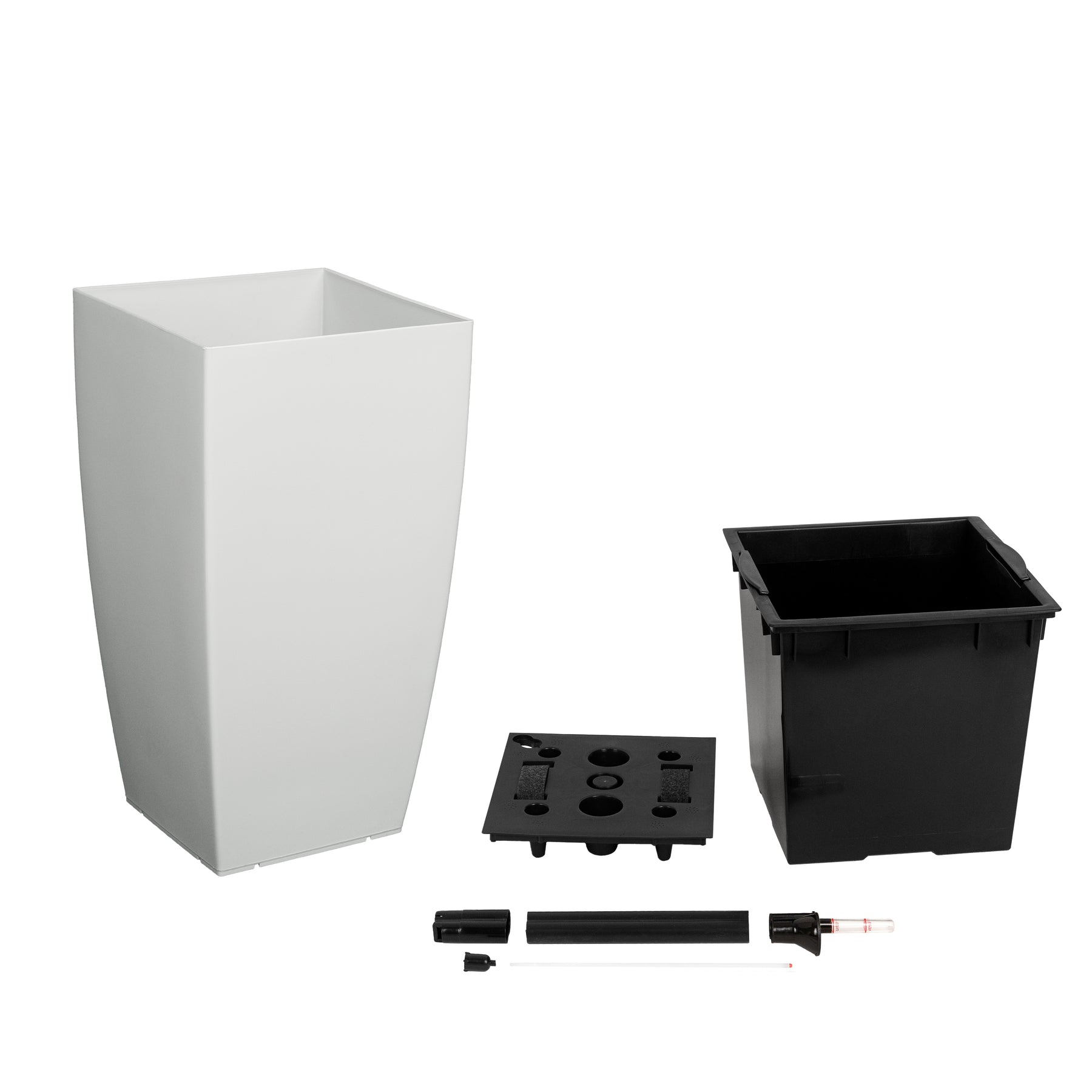 Ghiveci inteligent H56.5x31x31 cm cu set complet udare Cubico alb lucios
