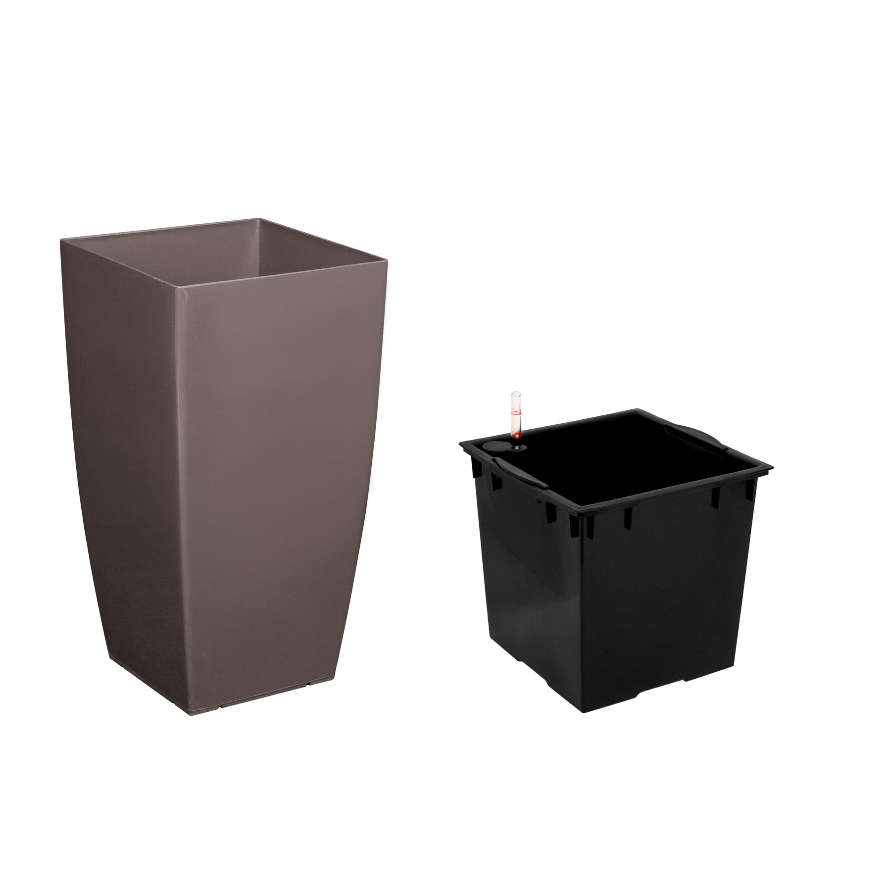 Ghiveci inteligent H56.5x31x31 cm cu set complet udare Cubico maro mat