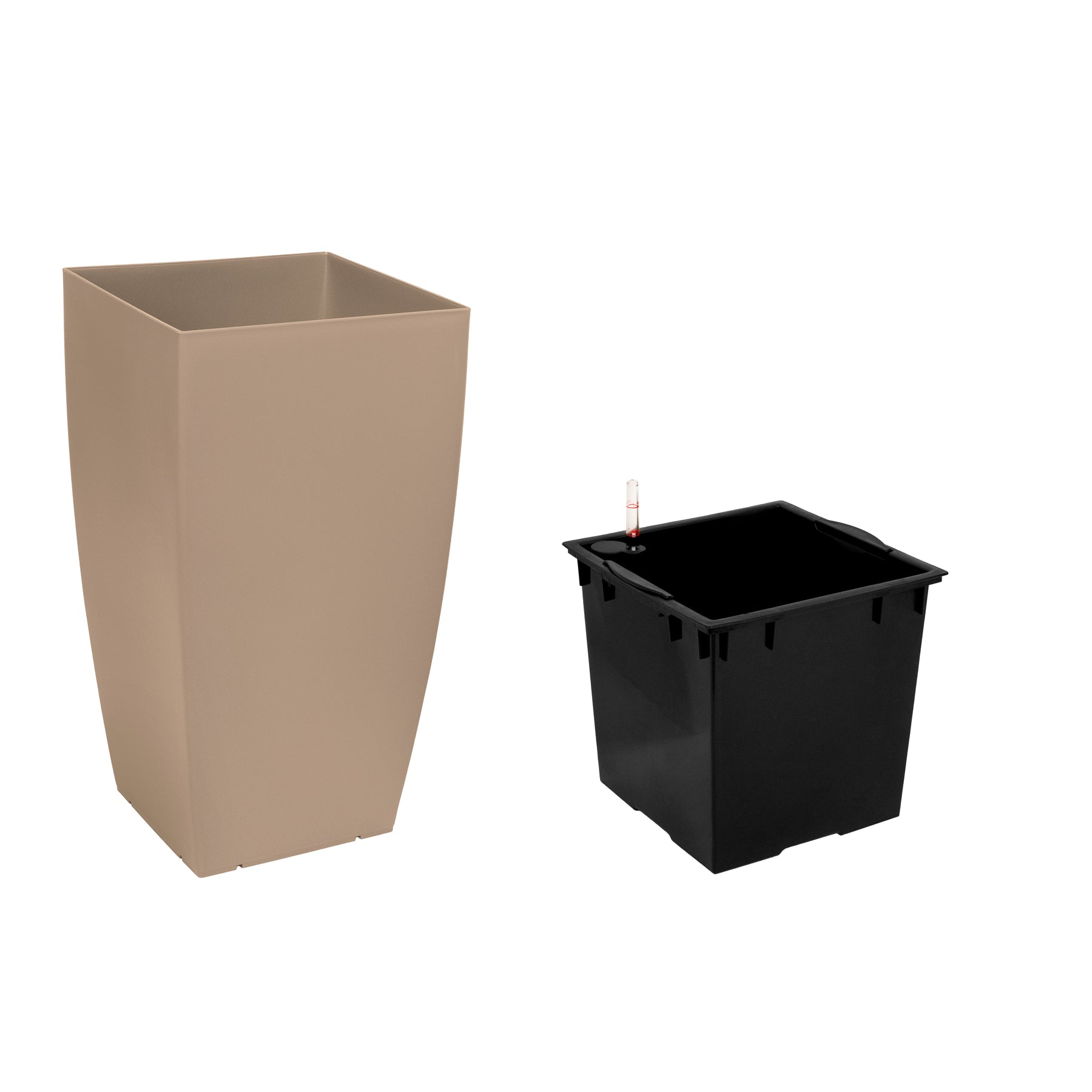 Ghiveci inteligent H66x36x36 cm cu set complet udare Cubico maro mat