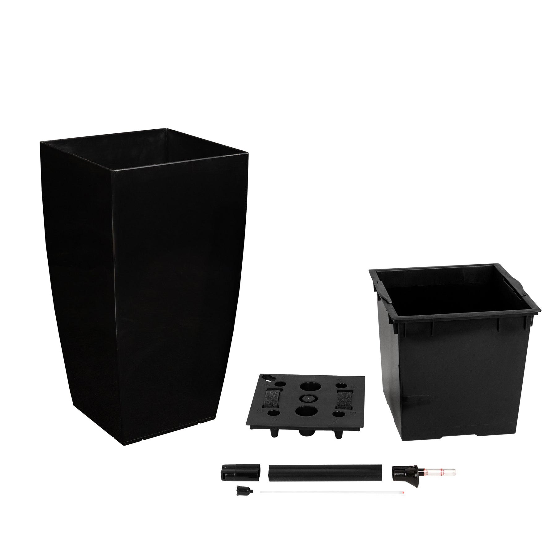 Ghiveci inteligent H56.5x31x31 cm cu set complet udare Cubico negru lucios
