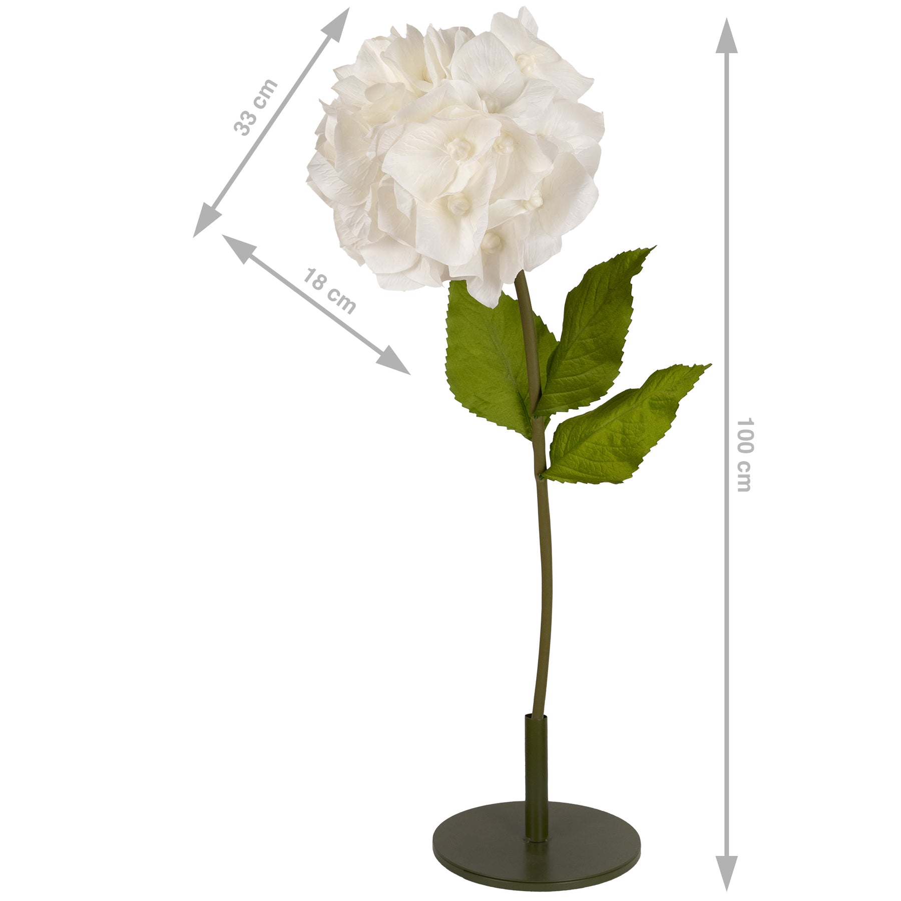 Hortensie artificiala D33xH100 cm alba cu tulpina gigant fara suport