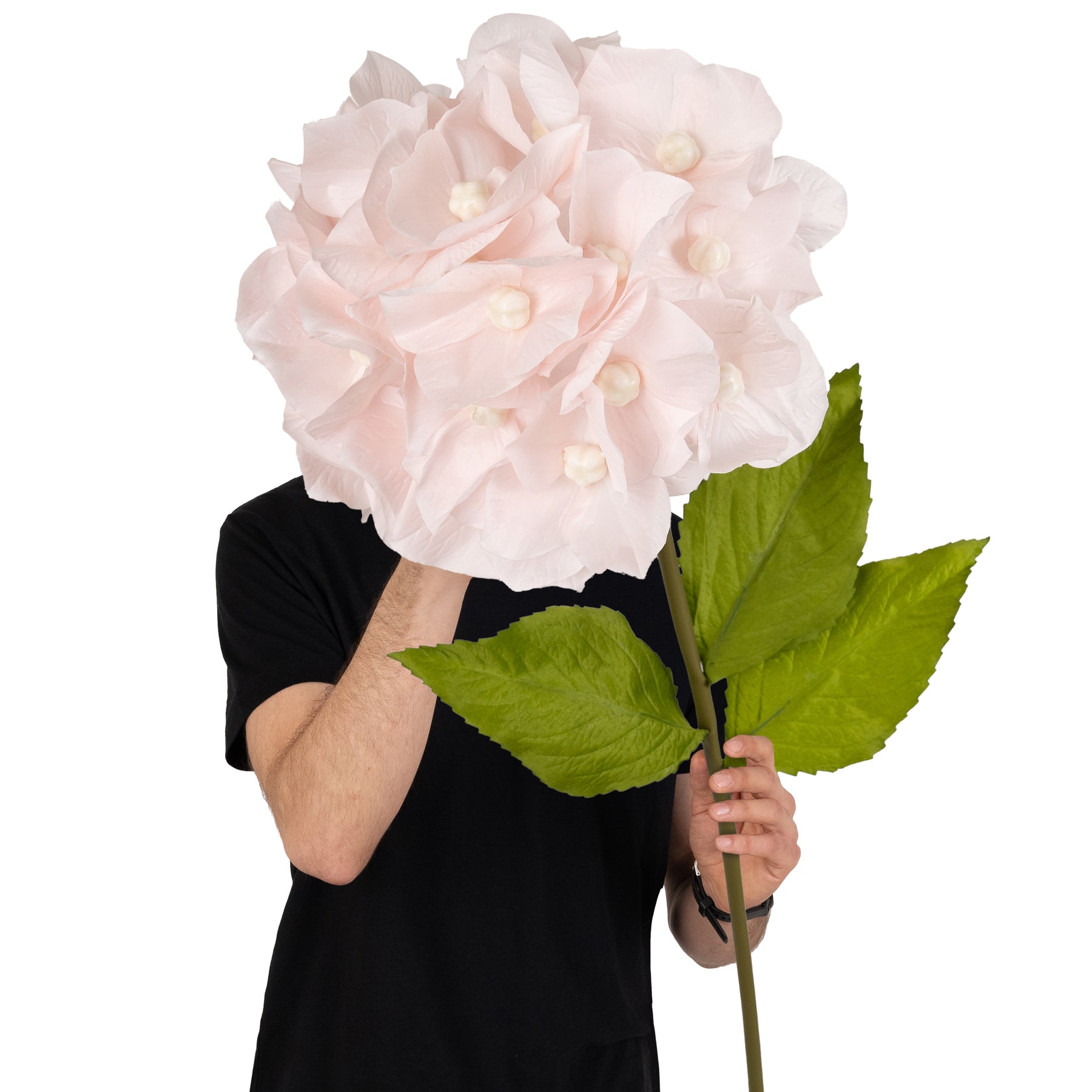 Hortensie artificiala D50xH130 cm piersica cu tulpina gigant XXL fara suport
