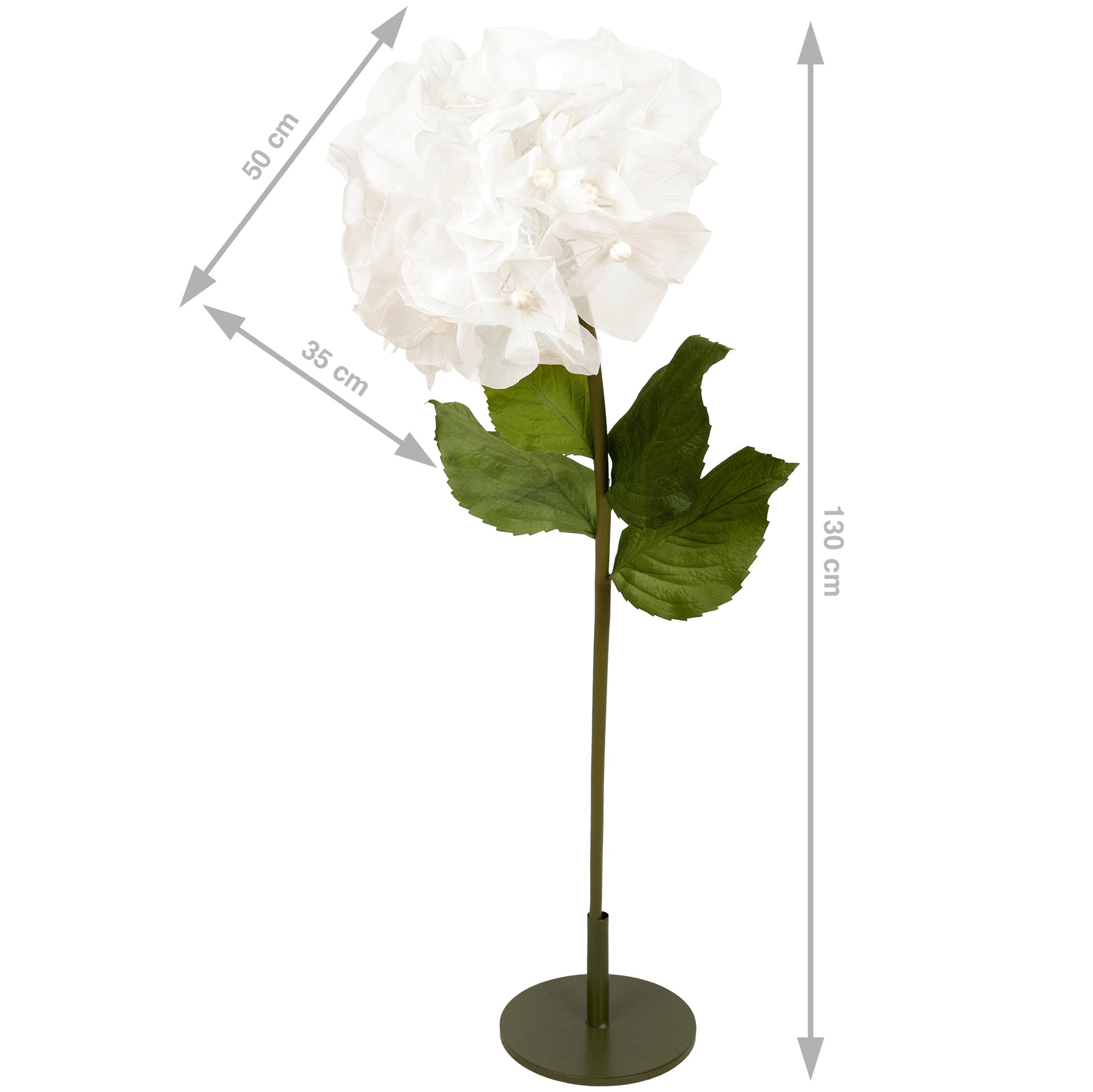 Hortensie artificiala D50xH130 cm alba cu tulpina gigant XXL fara suport