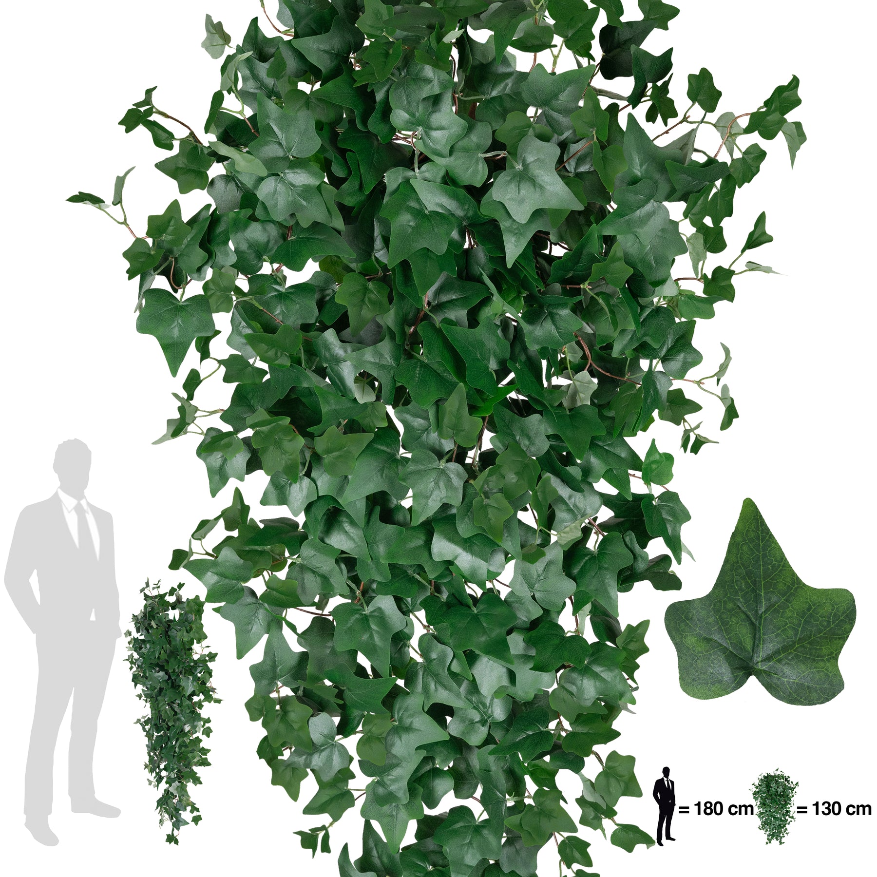 Iedera artificiala H200cm cu frunze verde inchis pentru exterior cu protectie UV