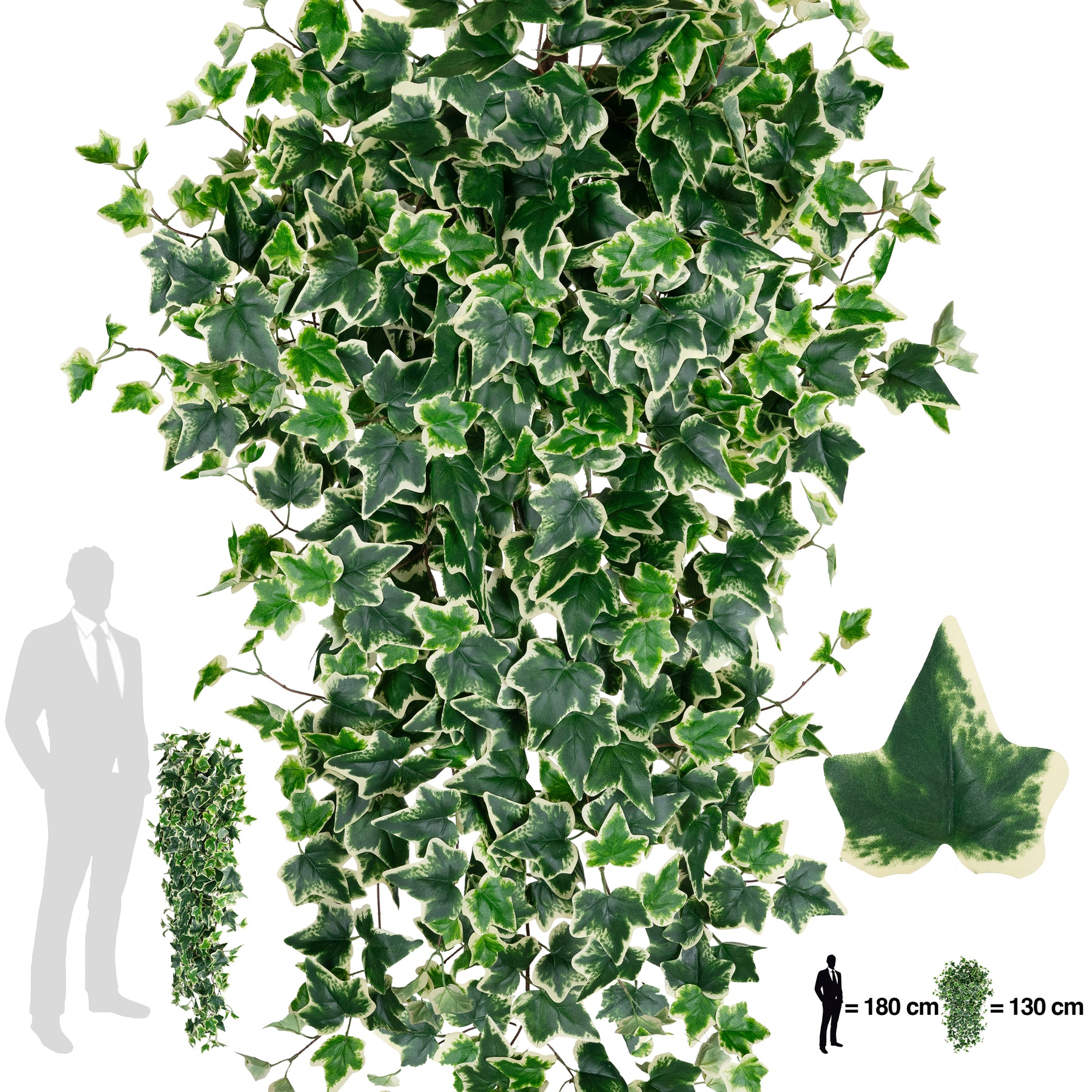 Iedera artificiala H200cm cu frunze verde cu alb pentru exterior cu protectie UV