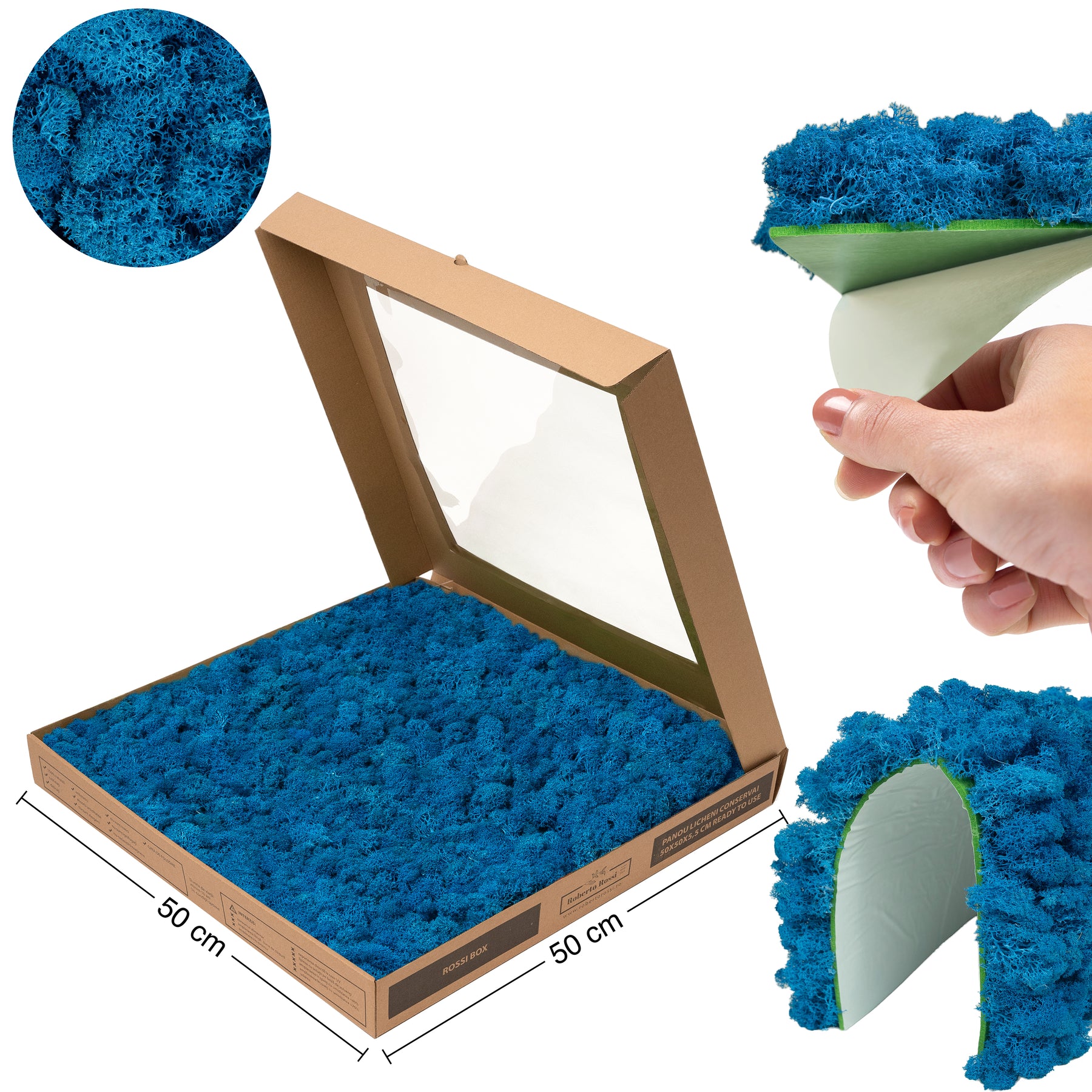 Licheni stabilizati gata lipiti panou 50x50x5.5 cm albastru azur deschis RR61