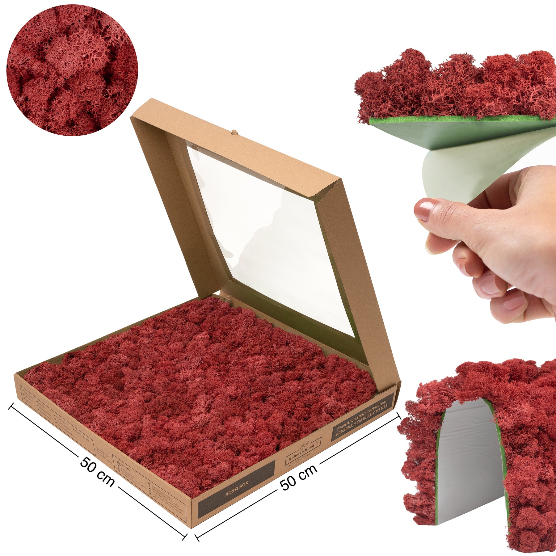 Licheni stabilizati panou 30x30 cm rosu intens. gata lipiti RR11