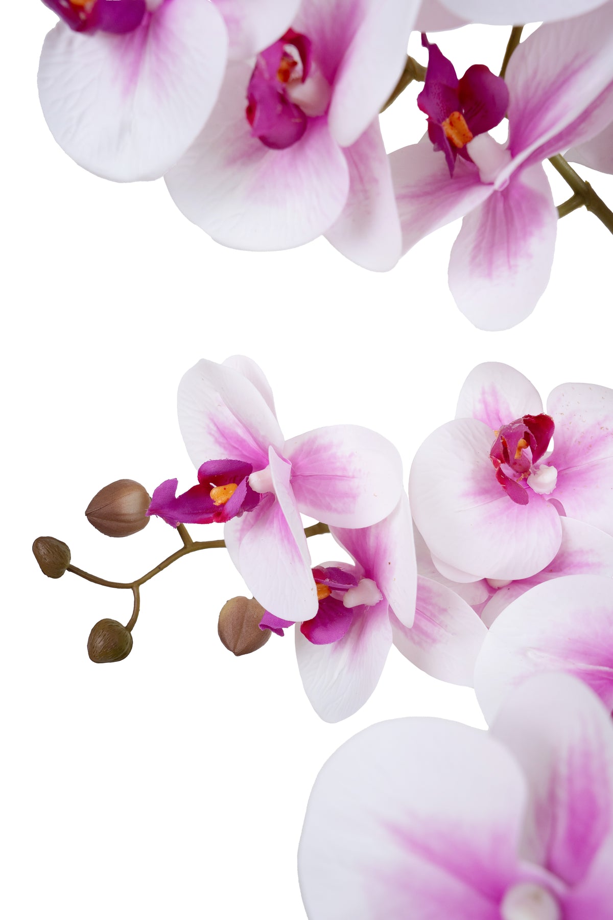 Orhidee artificiala alb cu mov cu aspect natural H71 cm cu 9 tulpini