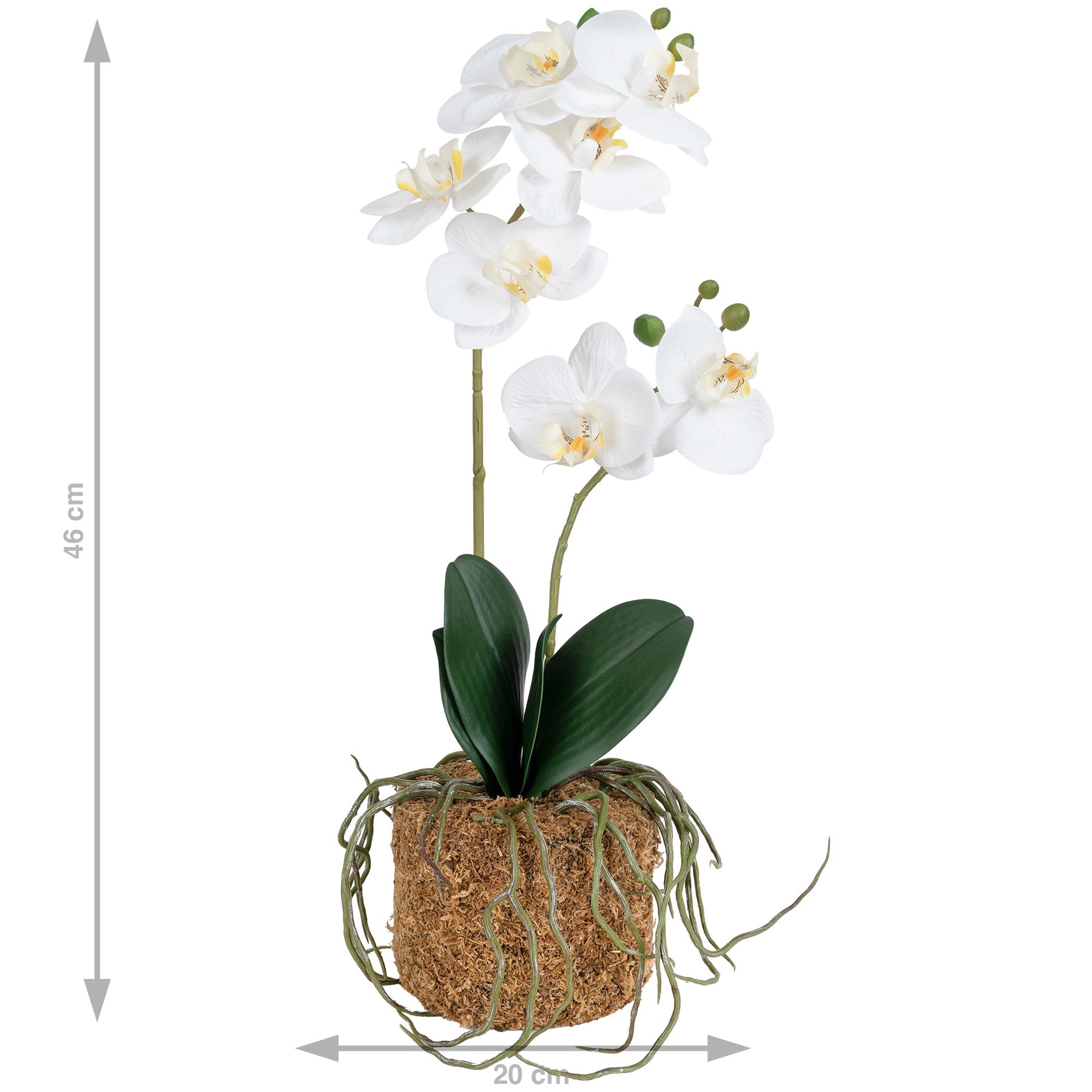 Orhidee artificiala alba cu aspect natural H53 cm cu 3 tulpini