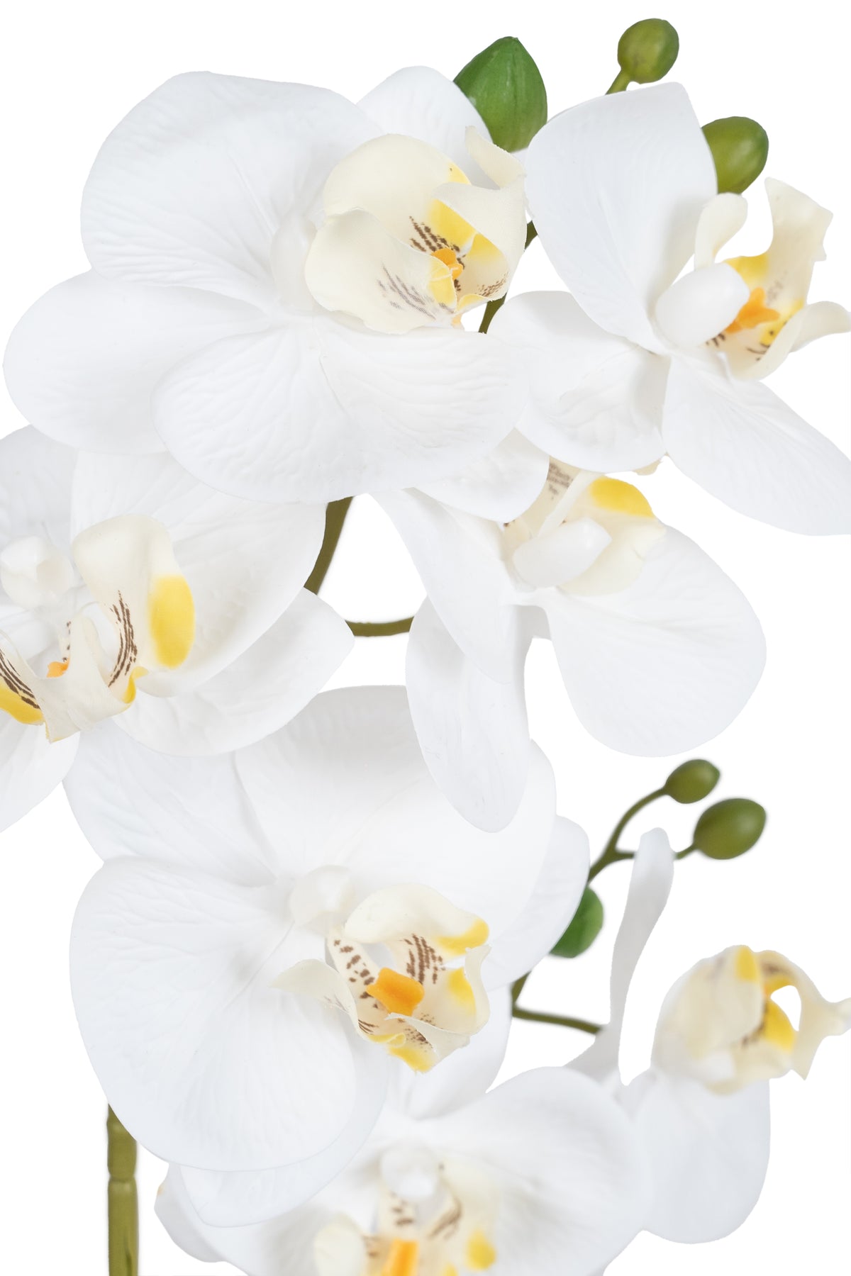 Orhidee artificiala alba cu aspect natural H80 cm cu 9 tulpini