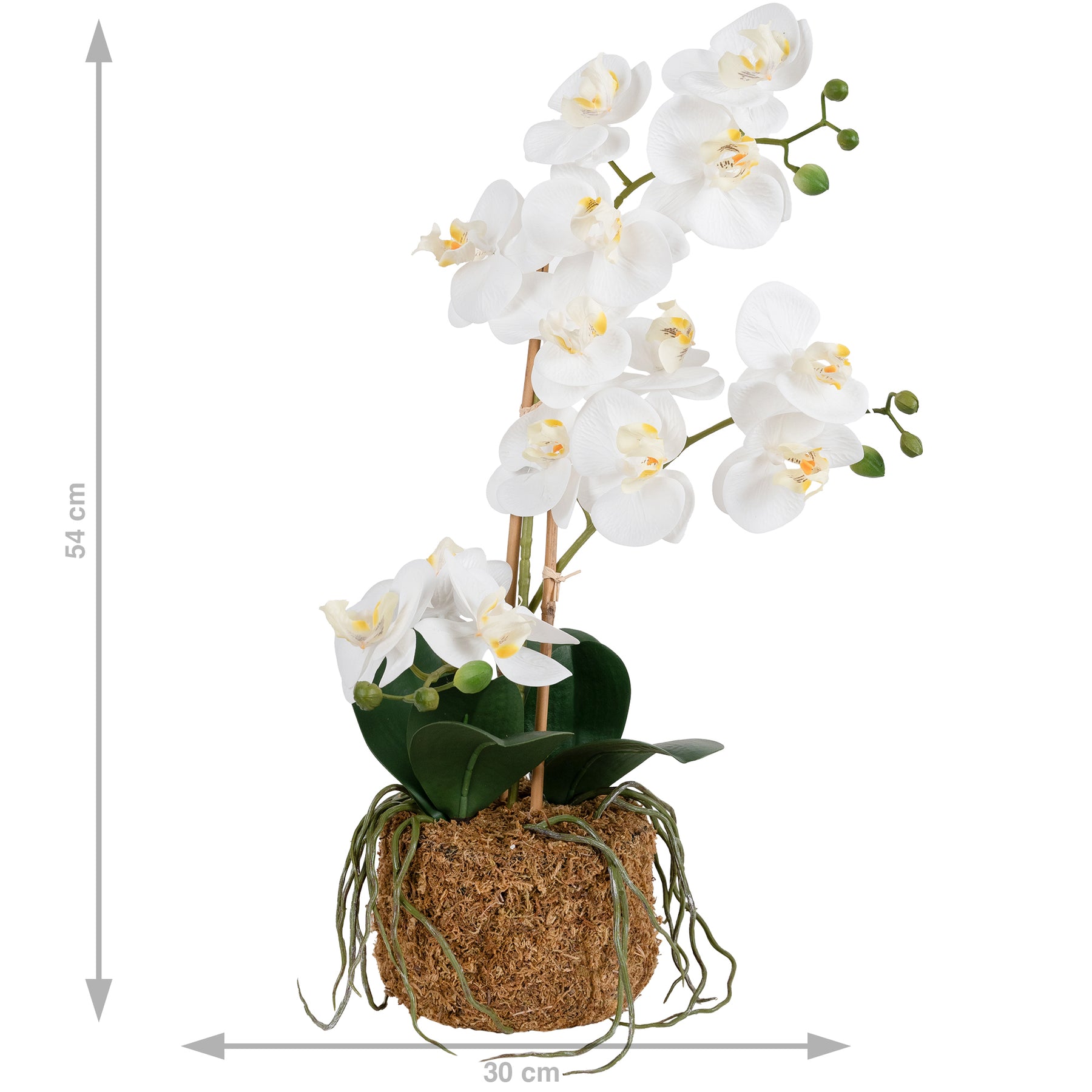 Orhidee artificiala alba cu aspect natural H54 cm cu 3 tulpini