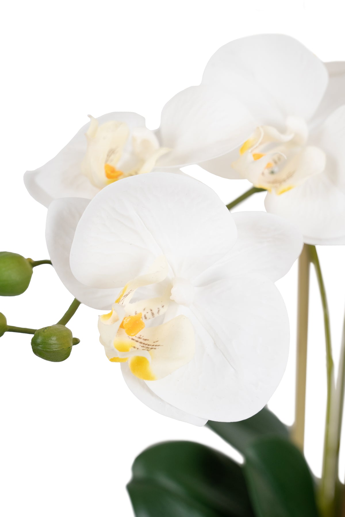 Orhidee artificiala alba cu aspect natural H55 cm cu 3 tulpini
