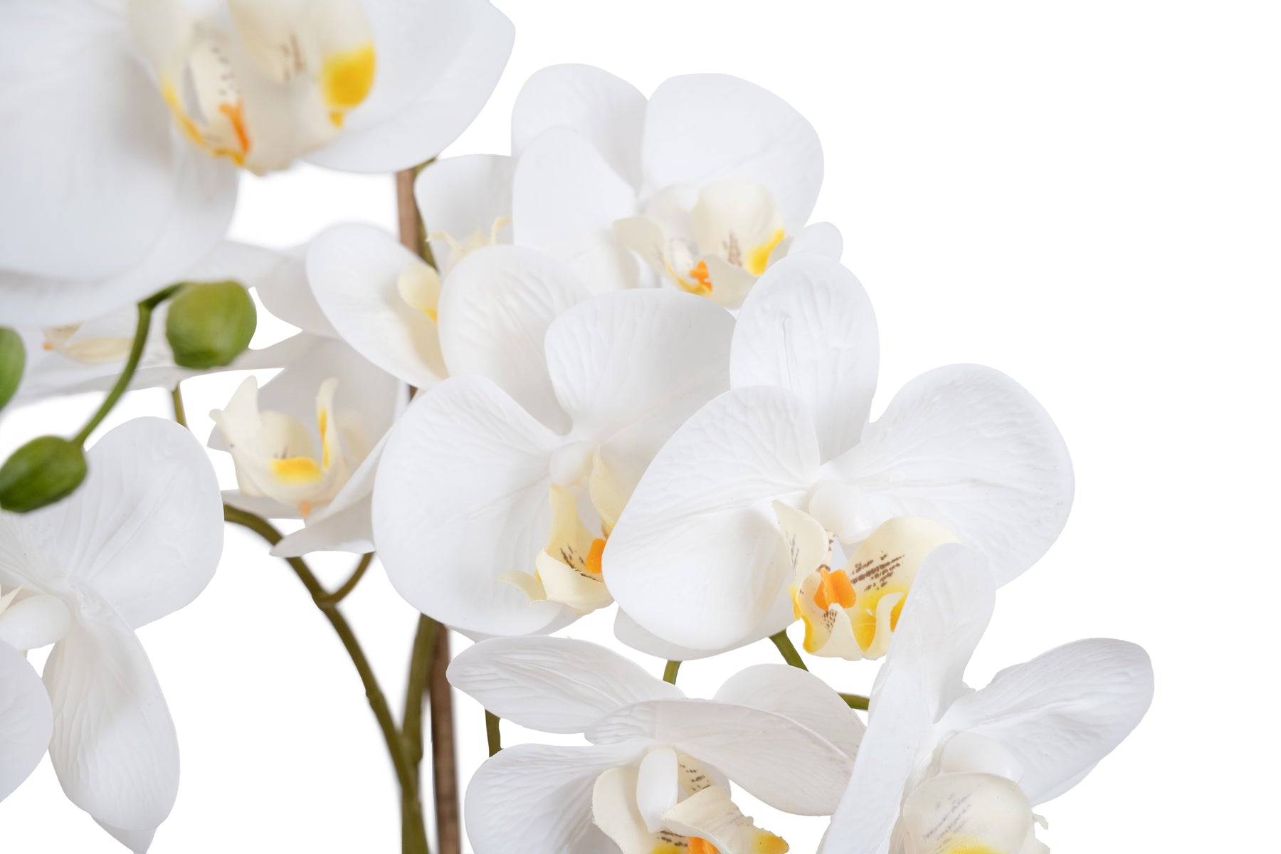 Orhidee artificiala alba cu aspect natural H120 cm cu 21 tulpini