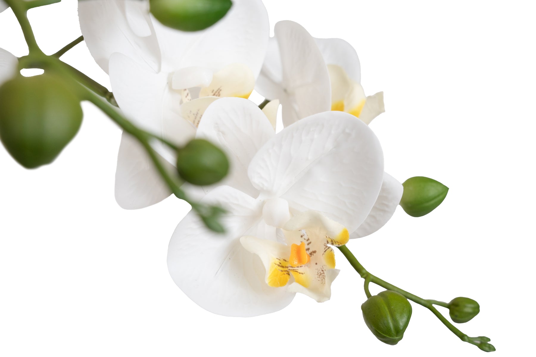Orhidee artificiala alba cu aspect natural H80 cm cu 9 tulpini