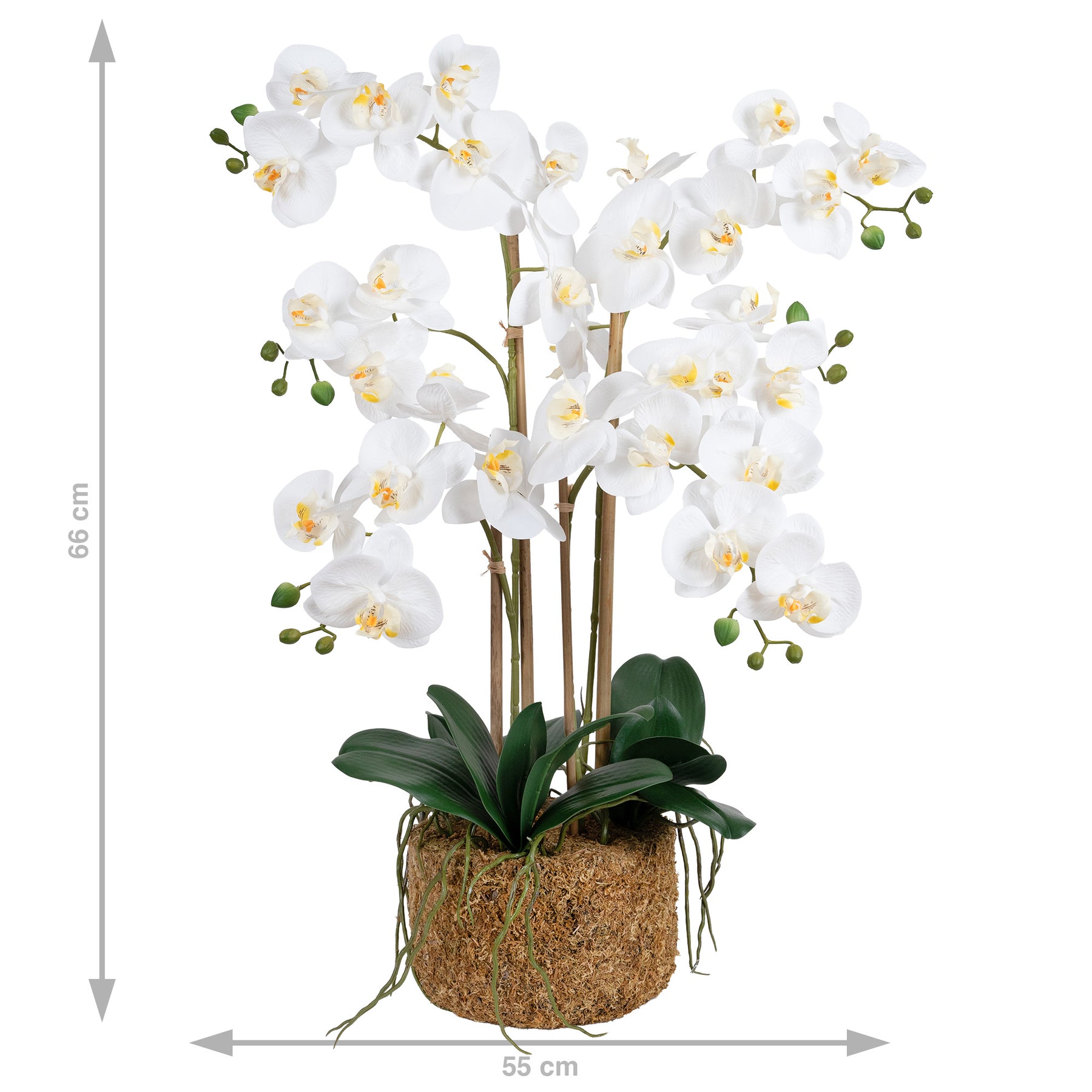 Orhidee artificiala alba cu aspect natural H76 cm cu 7 tulpini