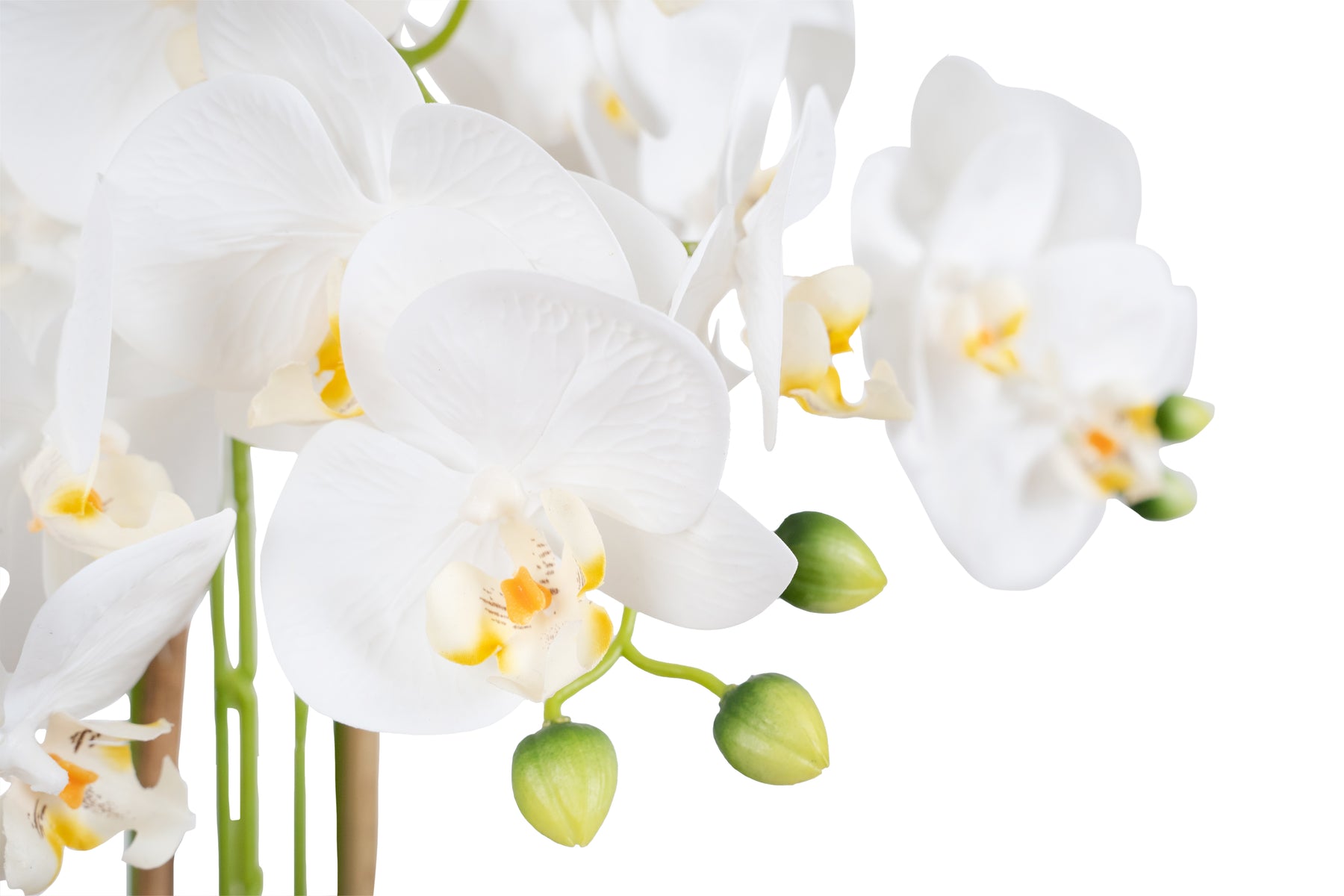 Orhidee artificiala alba cu aspect natural H80 cm cu 9 tulpini