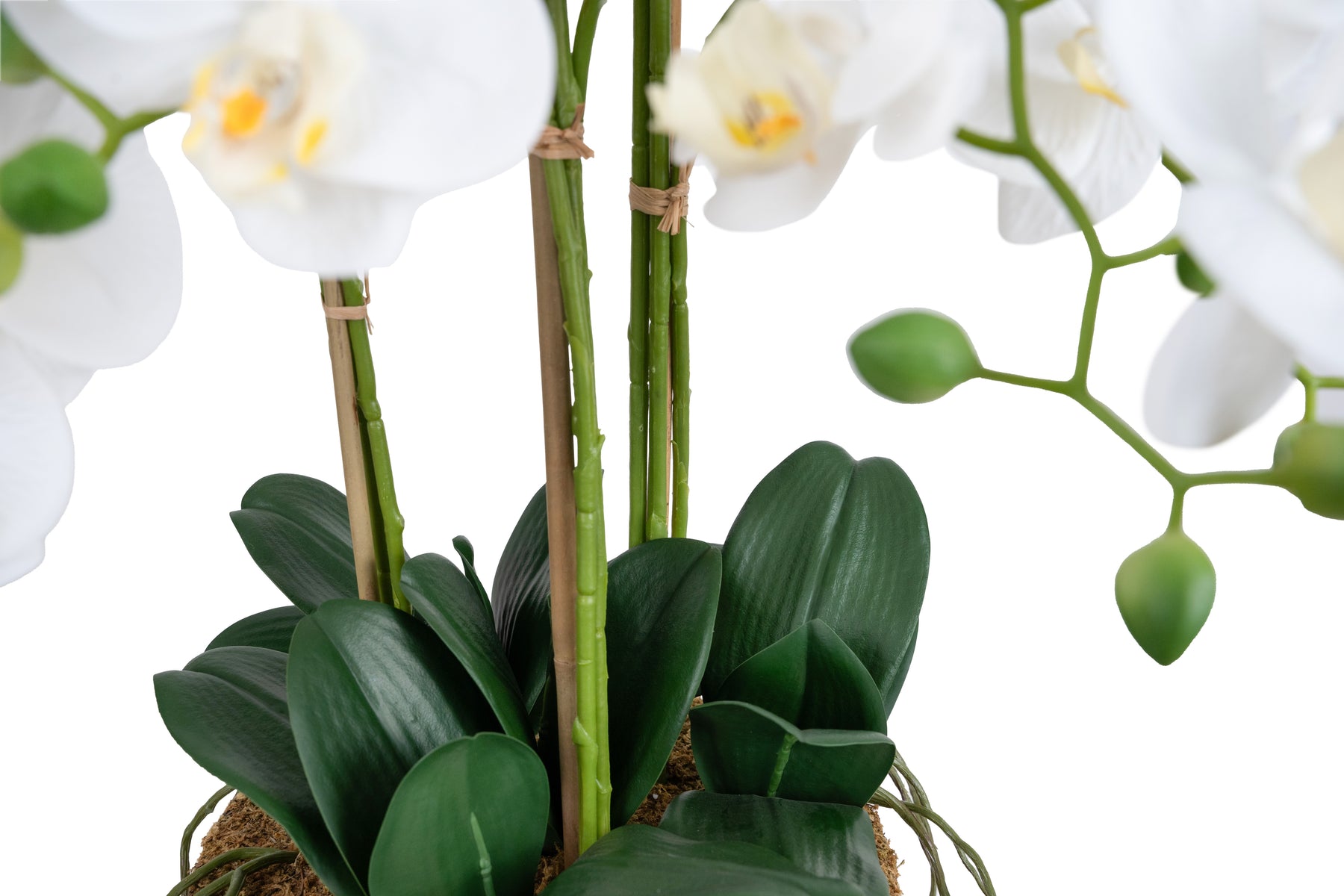 Orhidee artificiala alba cu aspect natural H90 cm cu 6 tulpini