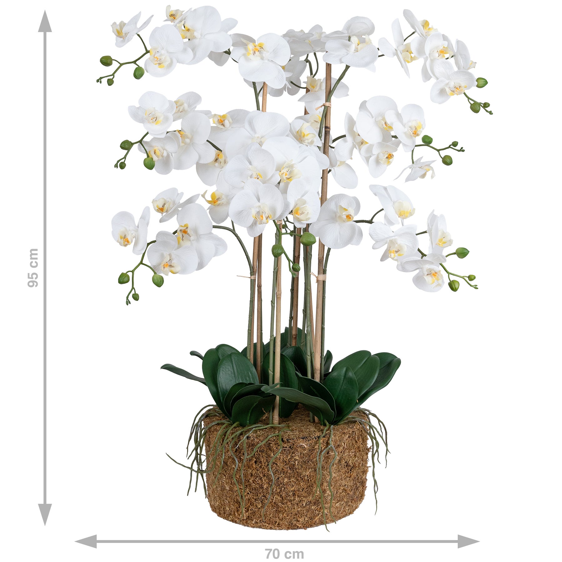 Orhidee artificiala alba cu aspect natural H90 cm cu 9 tulpini