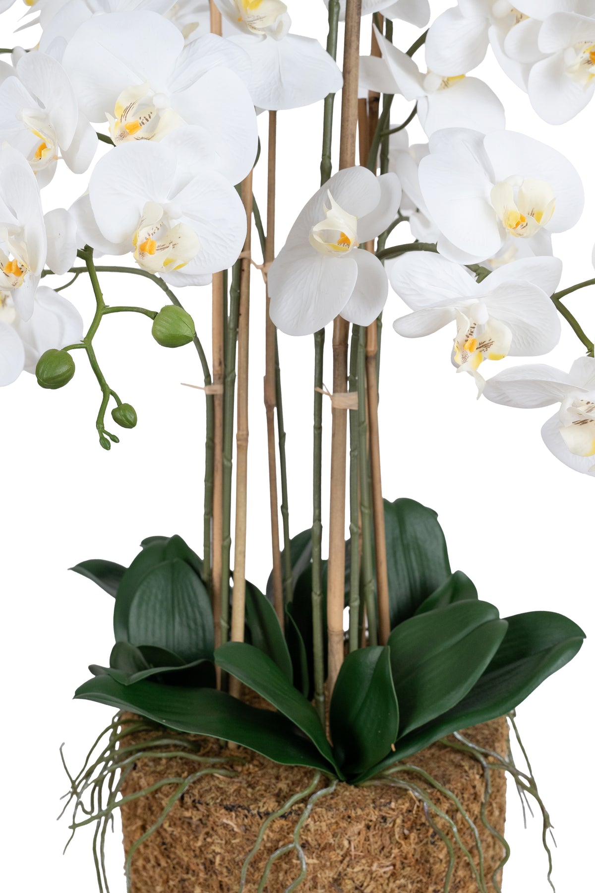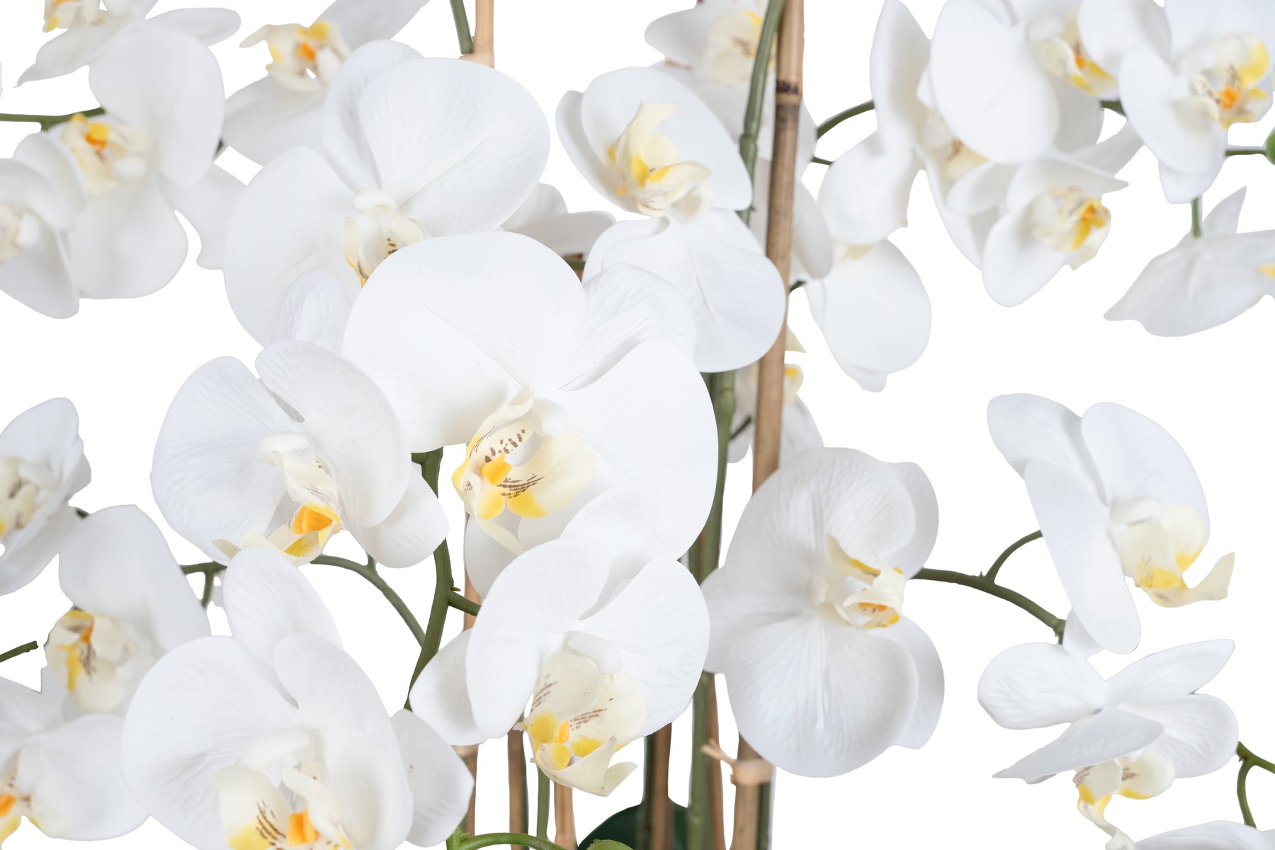 Orhidee artificiala alba cu aspect natural H120 cm cu 21 tulpini