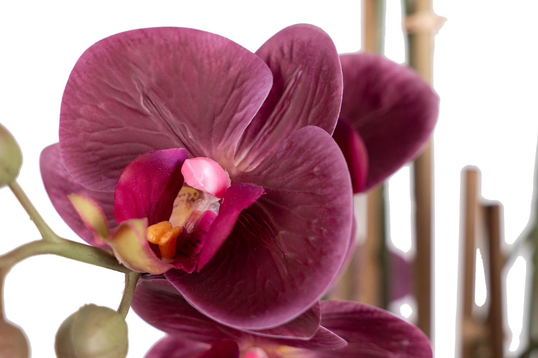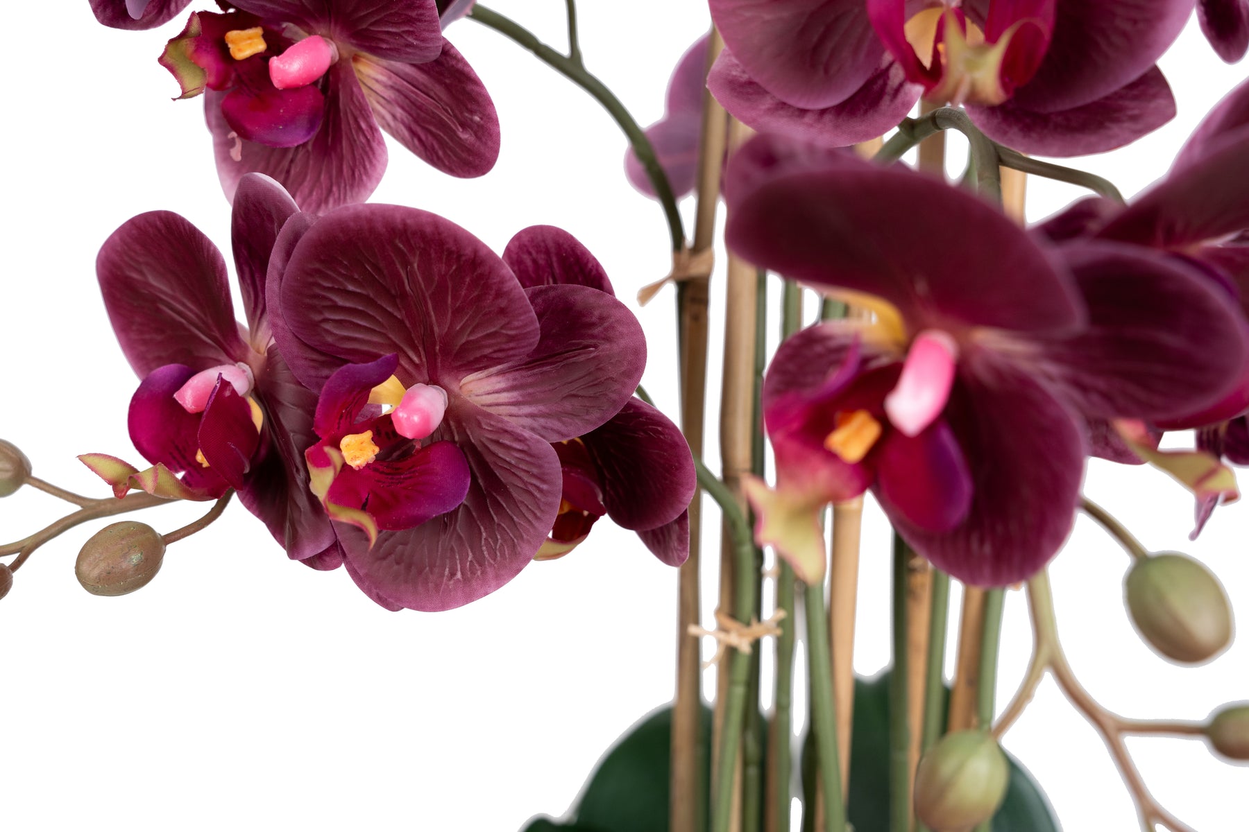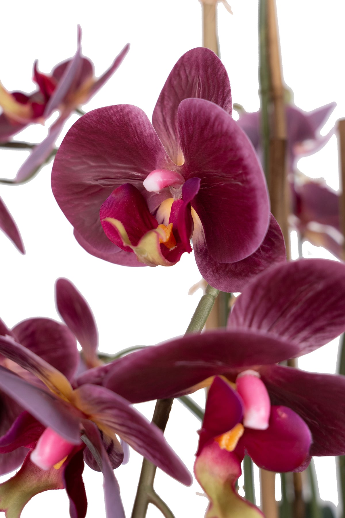 Orhidee artificiala grena cu galben cu aspect natural H120 cm cu 21 tulpini