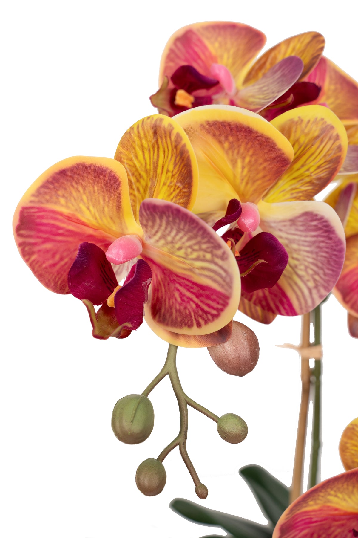 Orhidee artificiala grena cu galben cu aspect natural H56 cm cu 2 tulpini