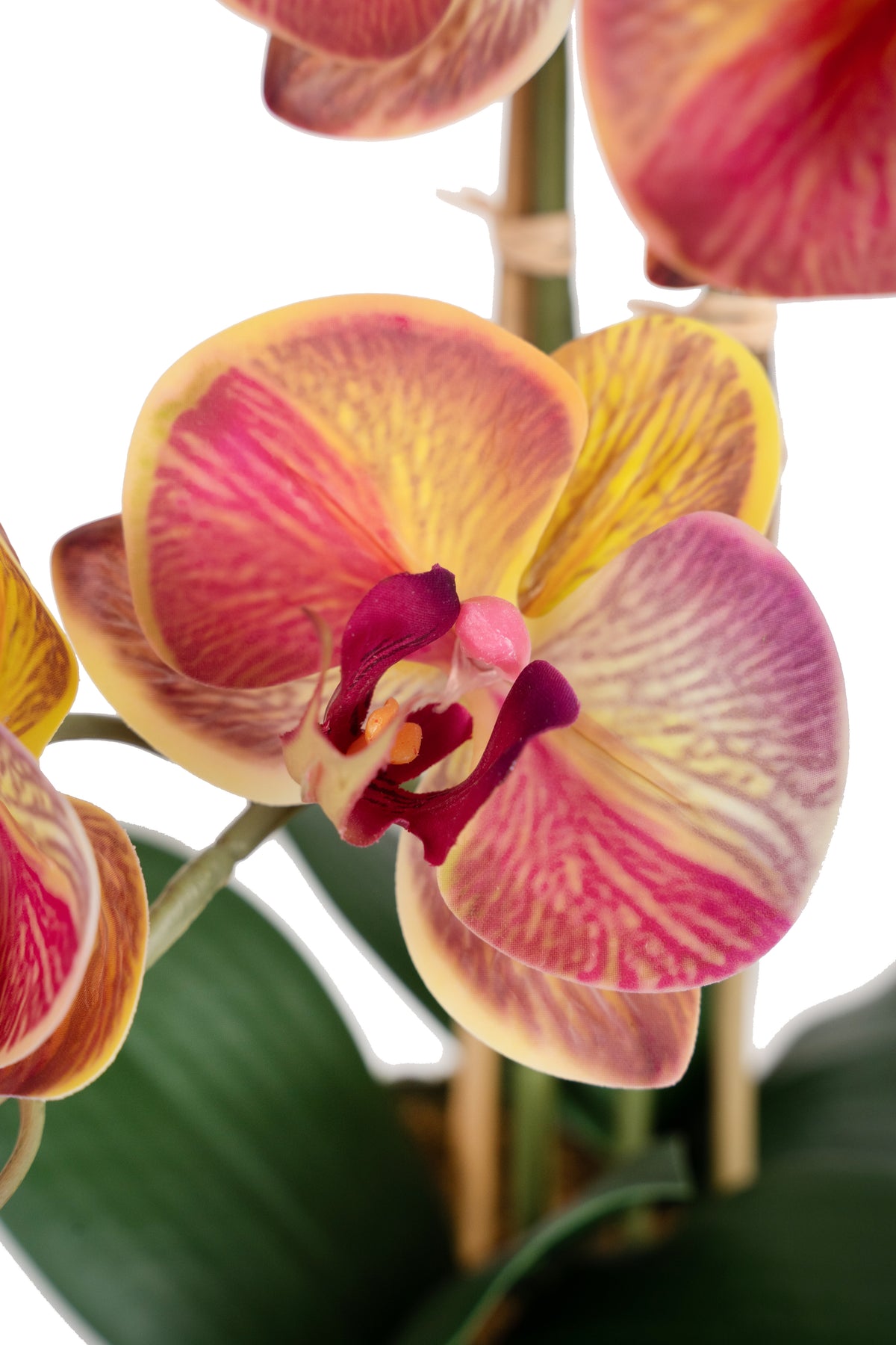 Orhidee artificiala roz cu galben cu aspect natural H61 cm cu 3 tulpini