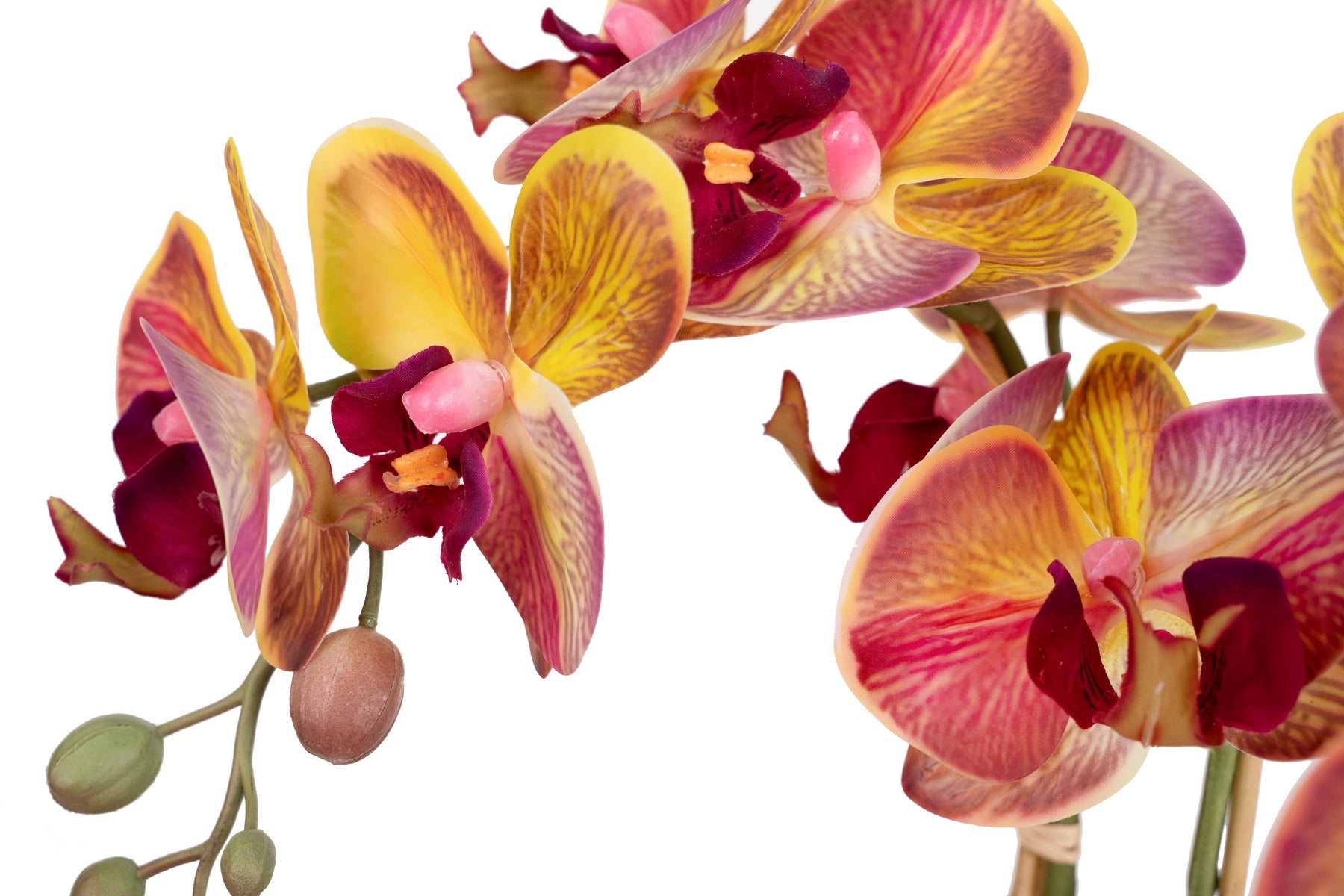 Orhidee artificiala grena cu galben cu aspect natural H55 cm cu 4 tulpini