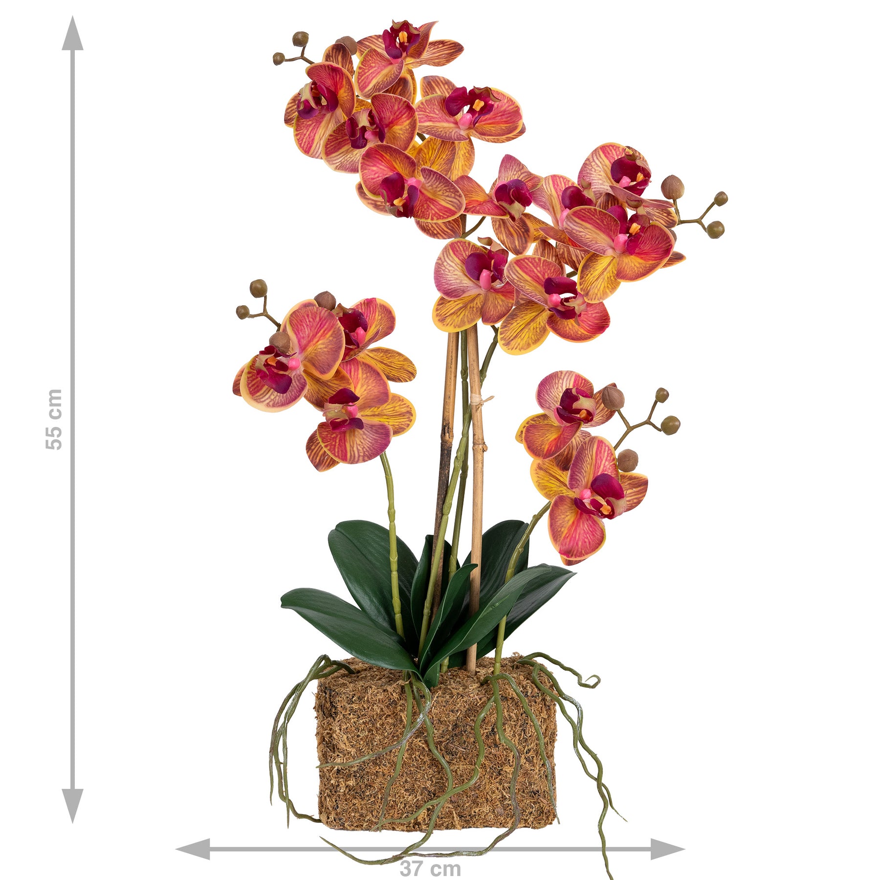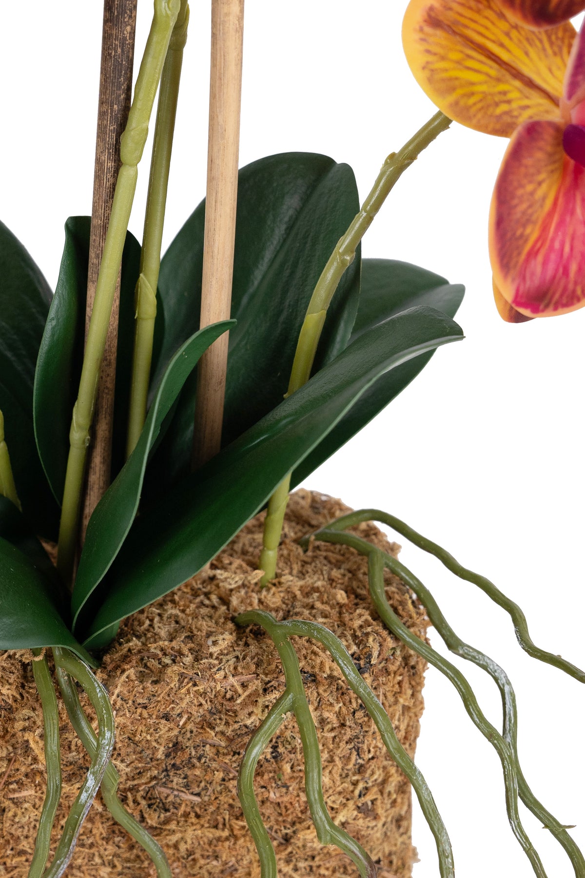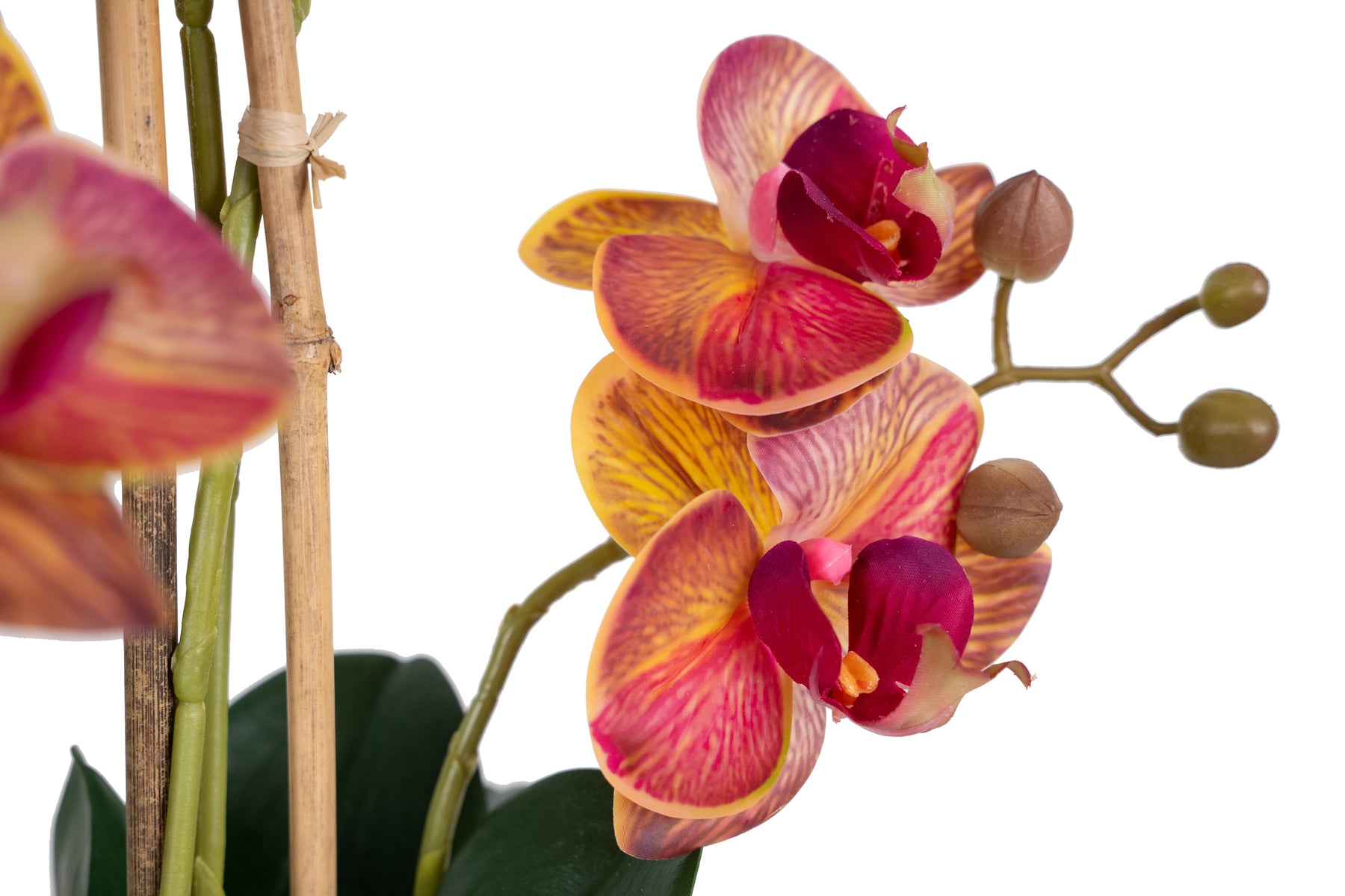 Orhidee artificiala galben cu roz cu aspect natural H64 cm cu 2 tulpini
