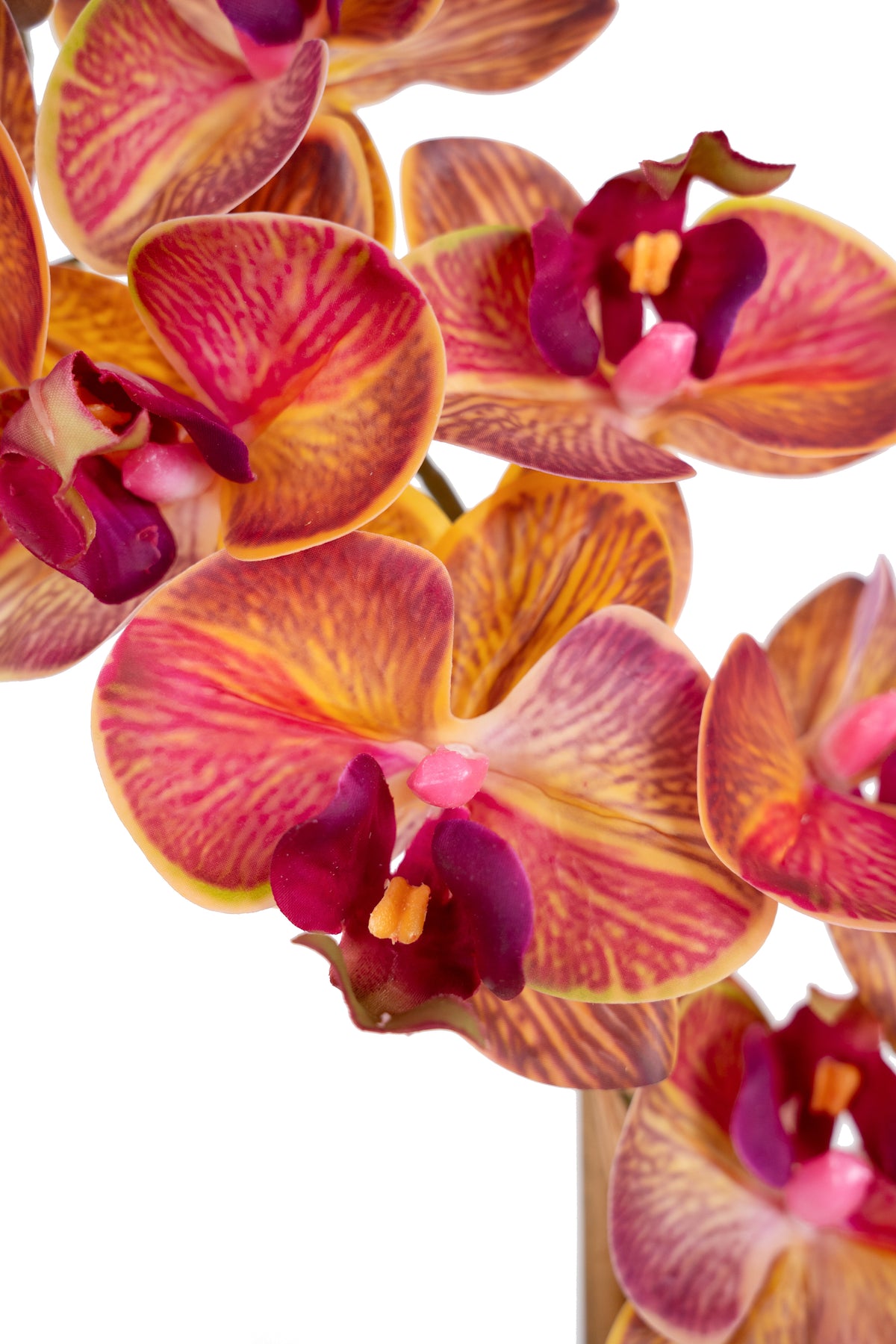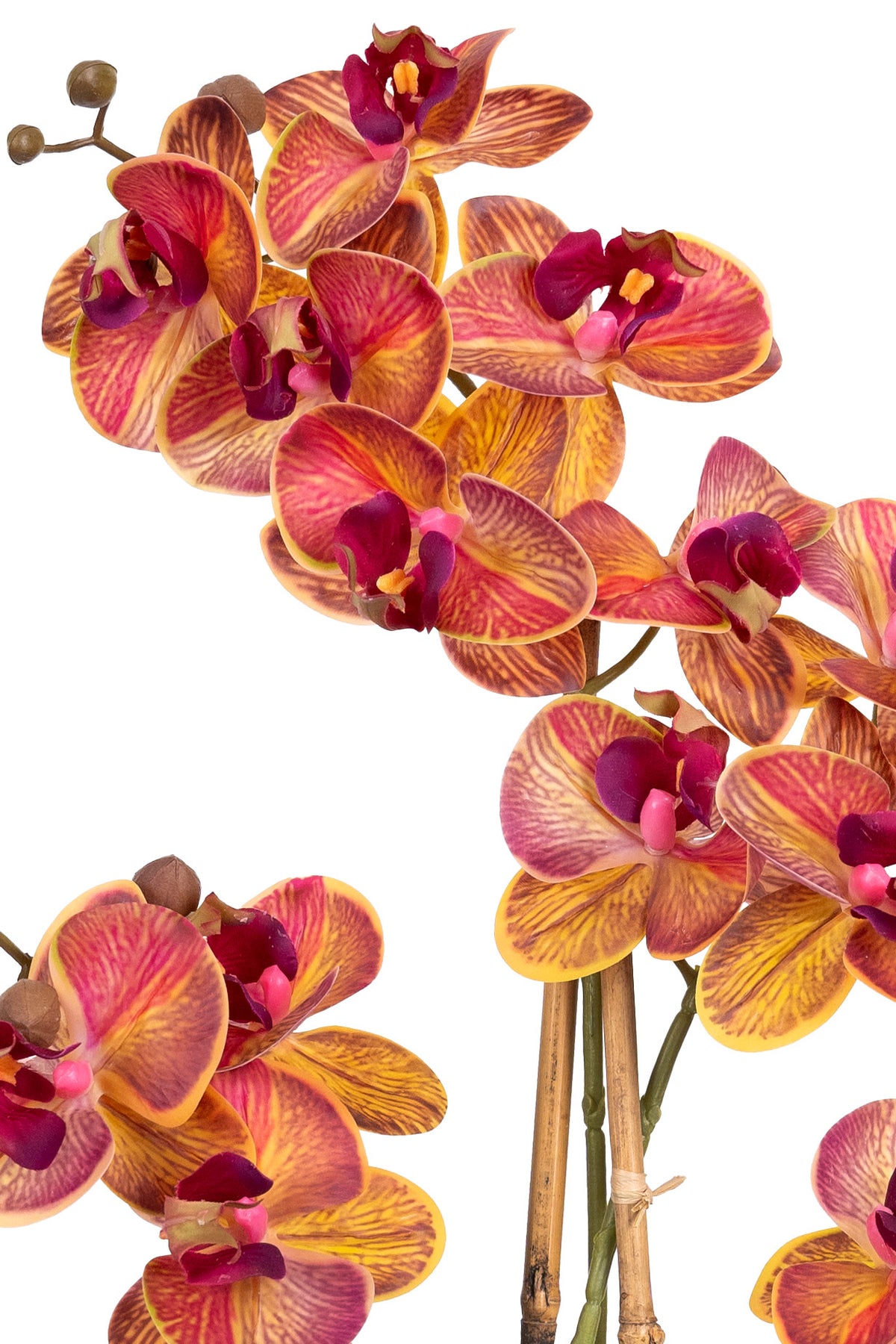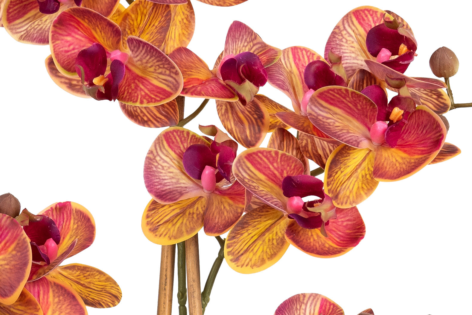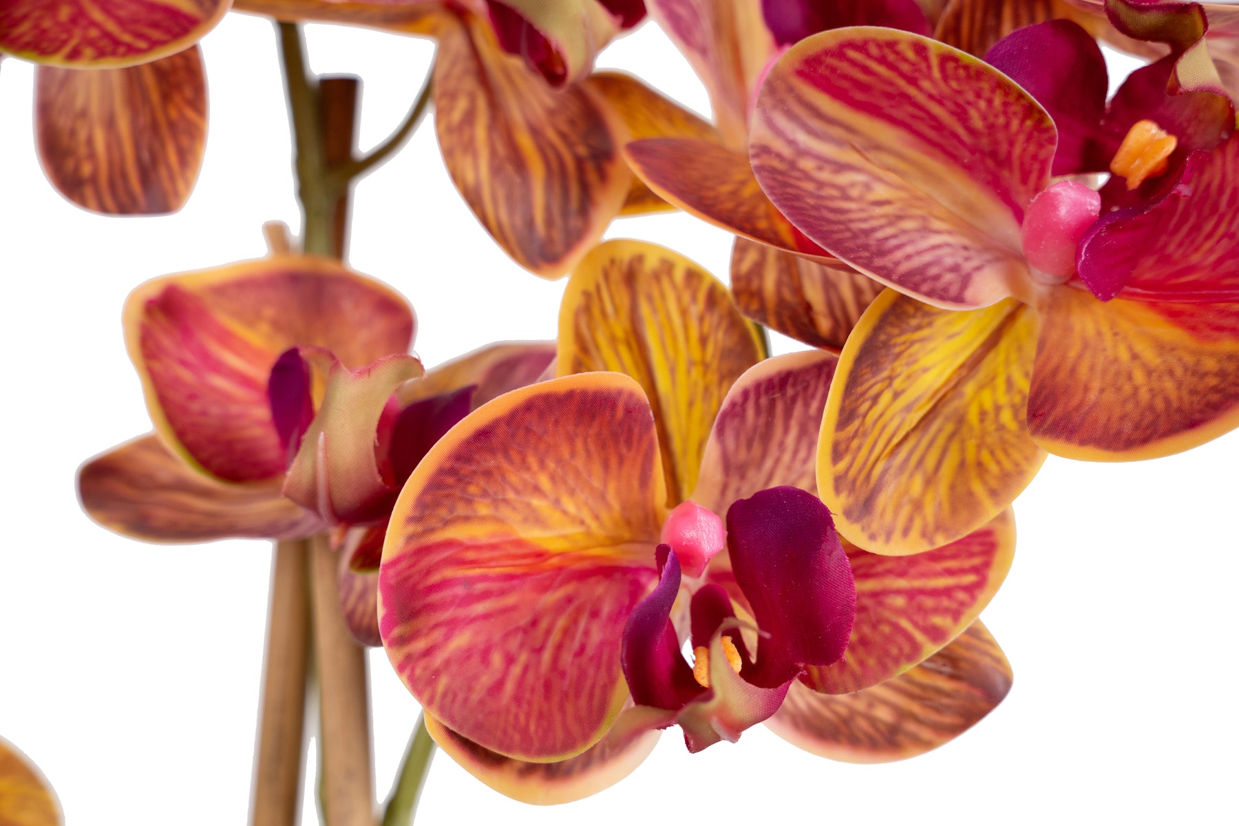 Orhidee artificiala grena cu galben cu aspect natural H120 cm cu 21 tulpini