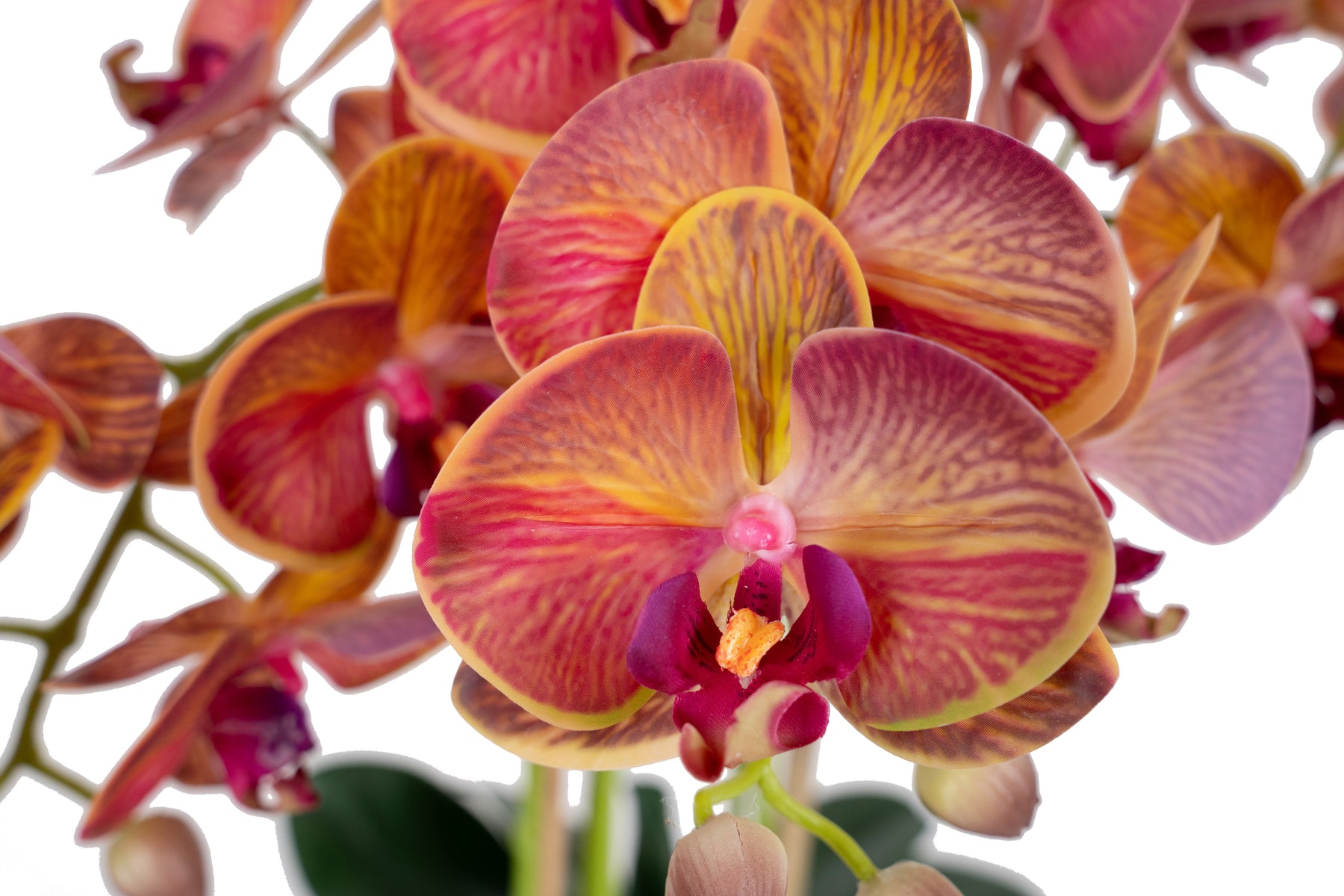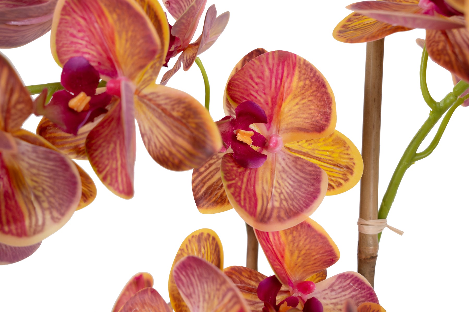 Orhidee artificiala roz cu portocaliu cu aspect natural H90 cm cu 9 tulpini