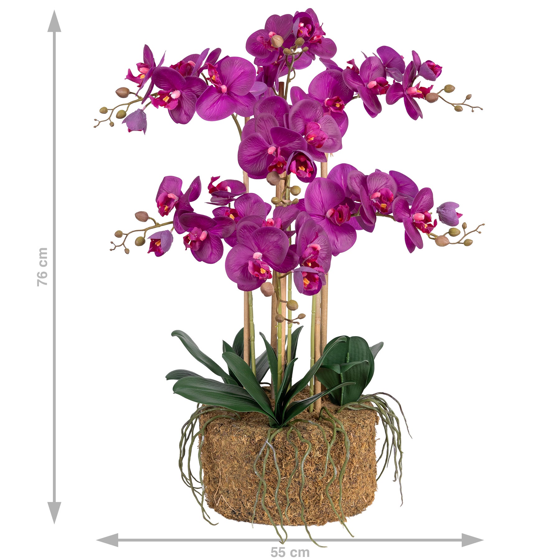 Orhidee artificiala roz-magenta cu aspect natural H90 cm cu 9 tulpini
